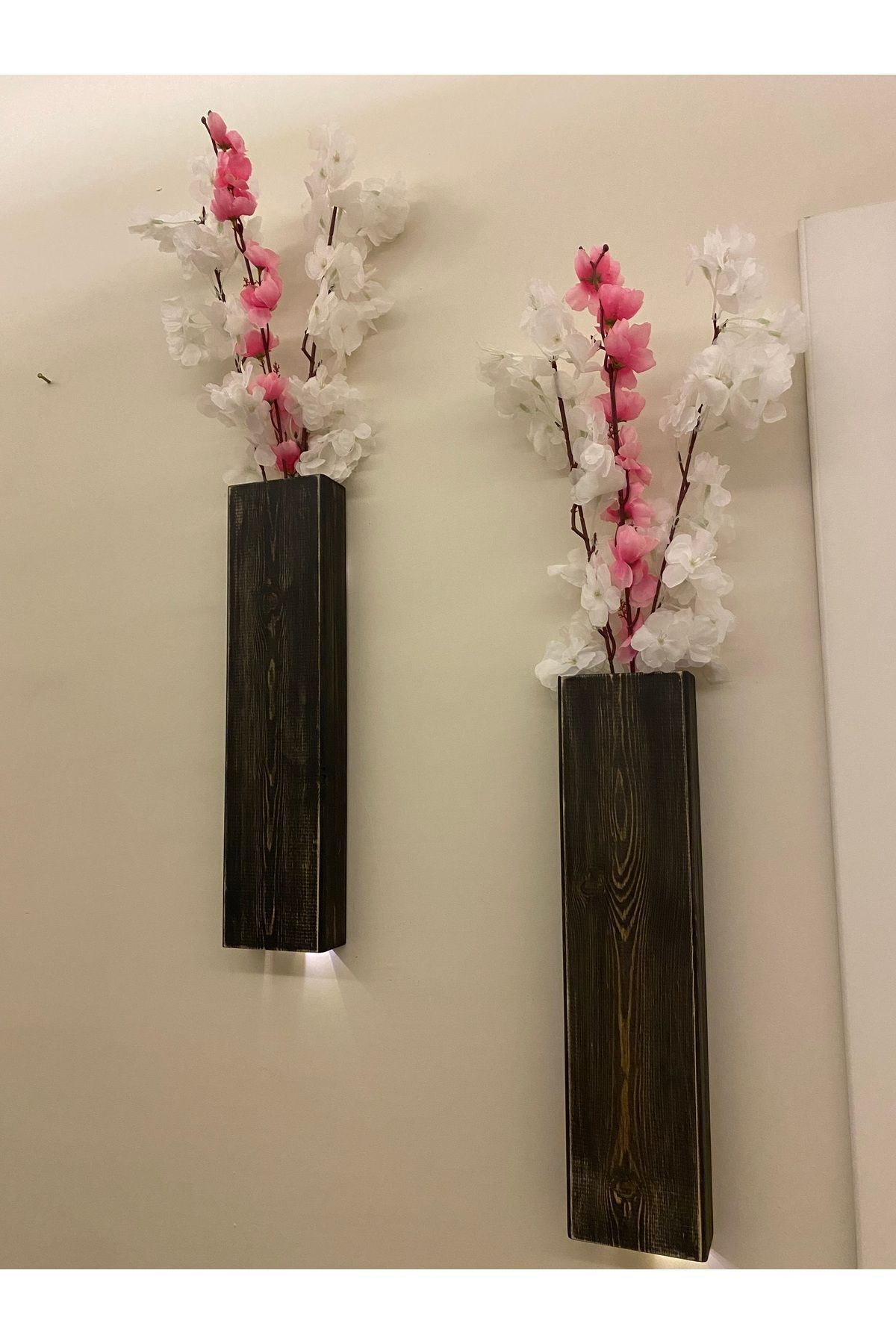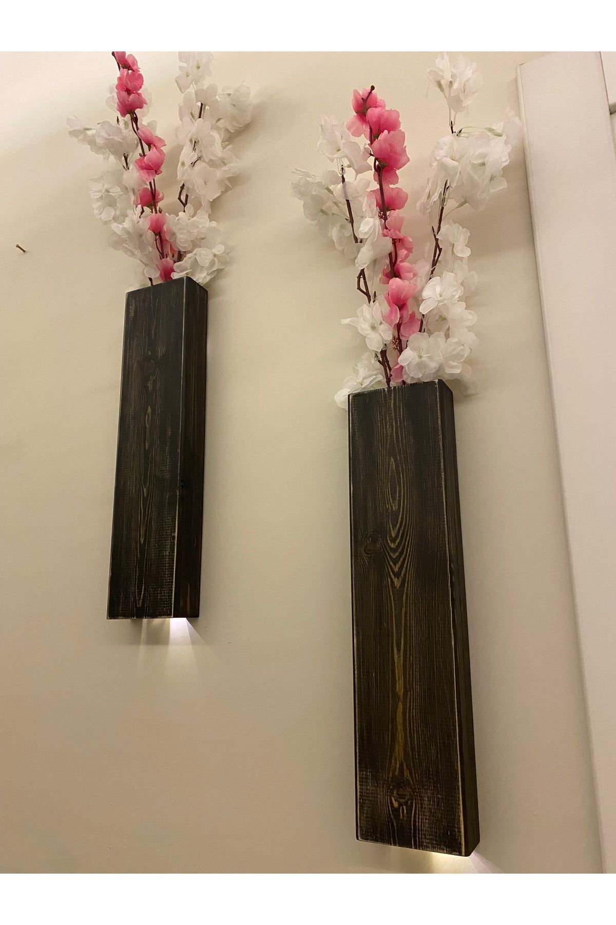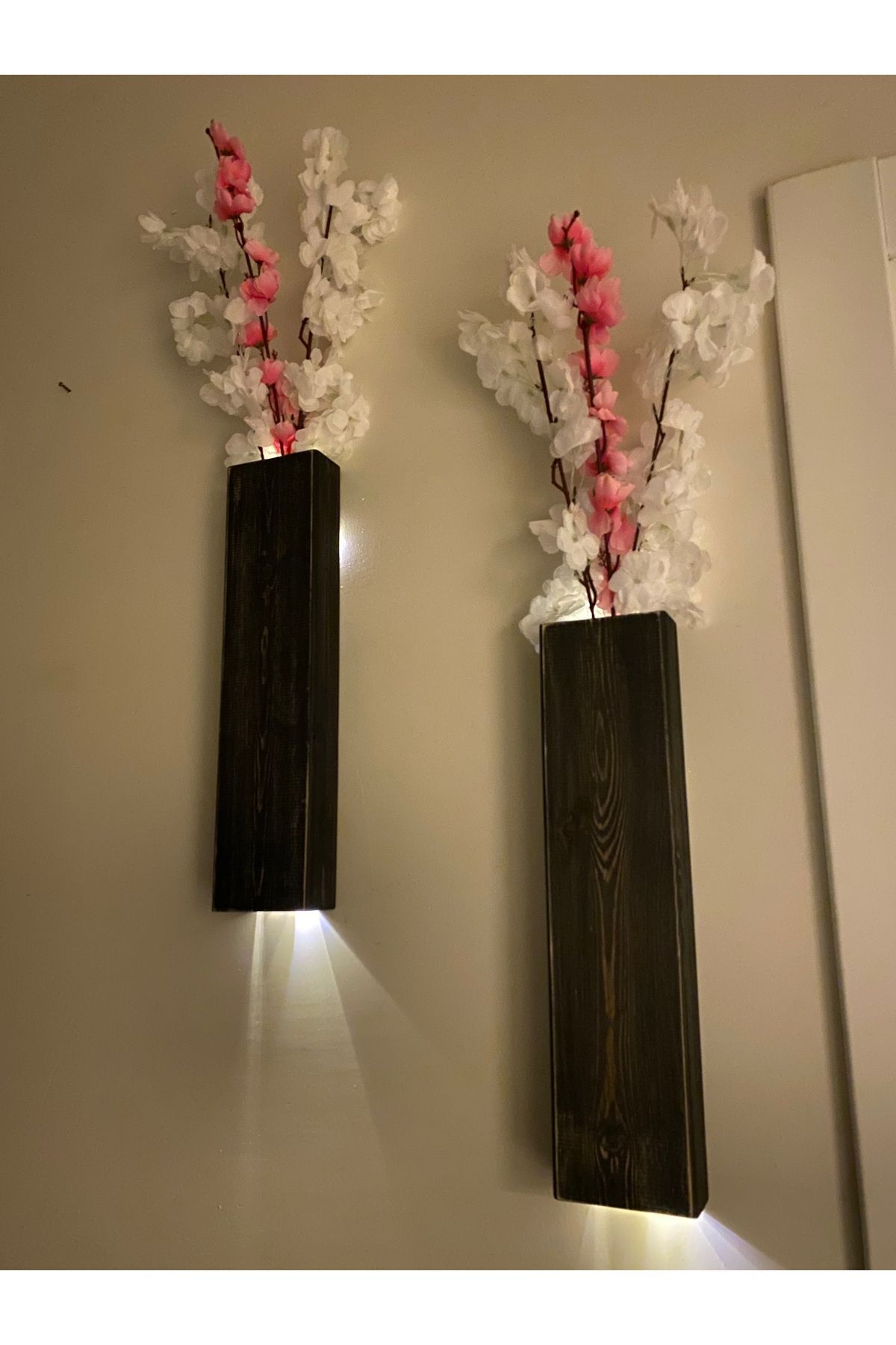 2 Li Lüx Ahşap Çiçeklik Peri Ledli Aranjman Dekoratif Aydınlatma Ev Hediyesi Cafe Otel 40cm
