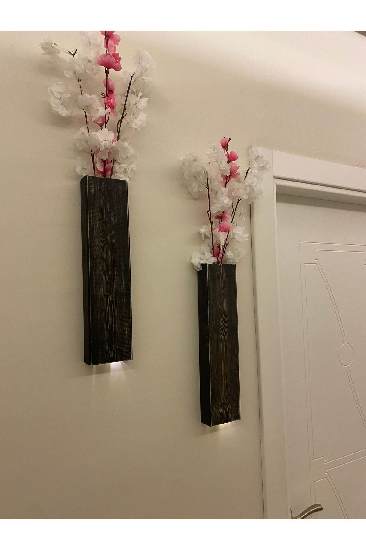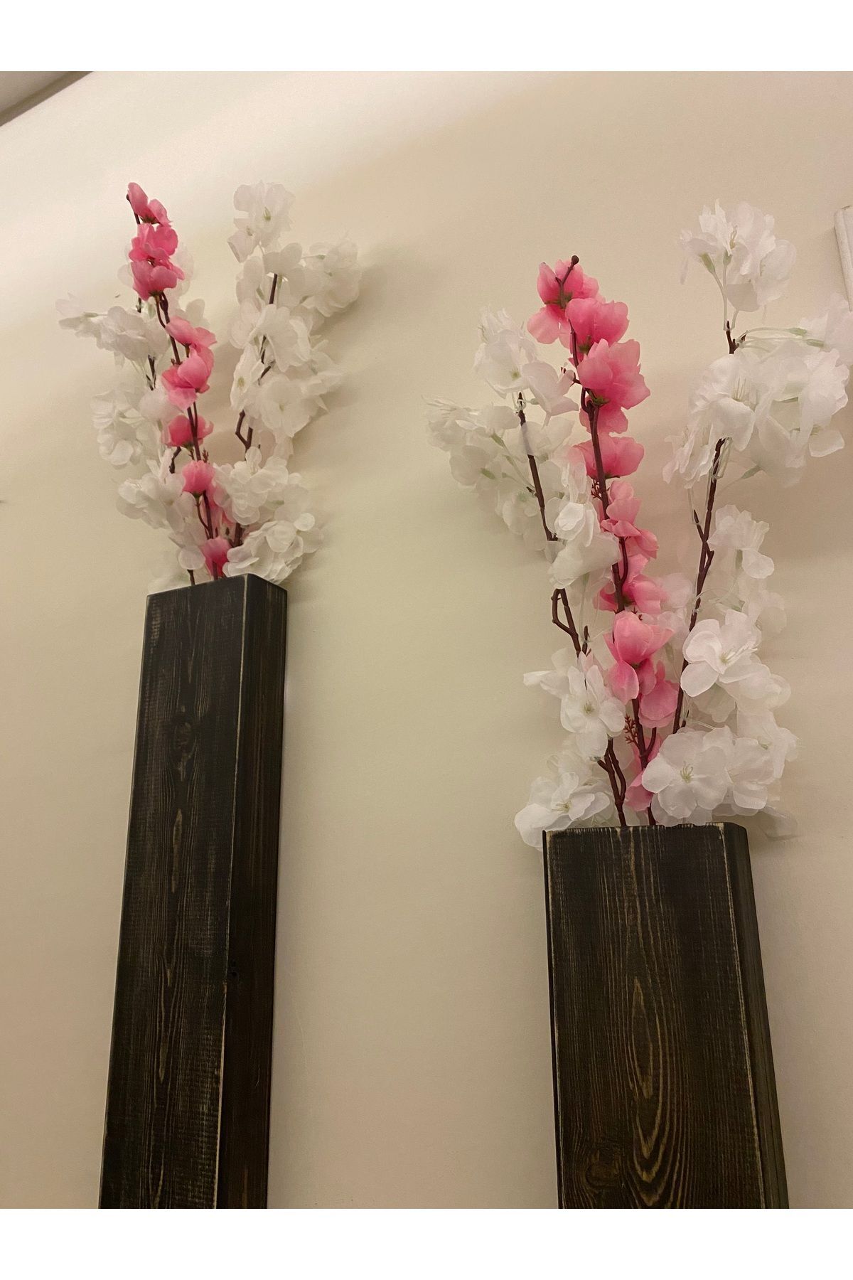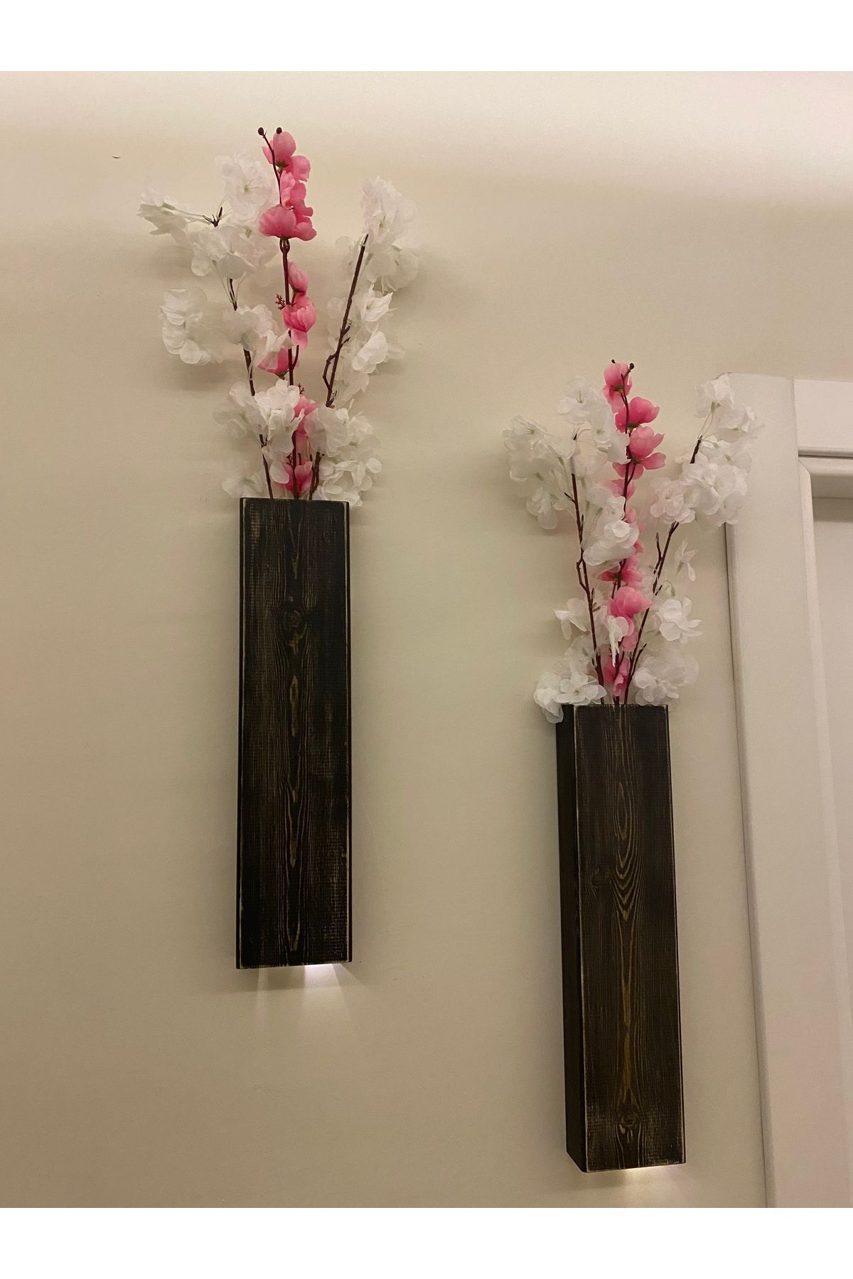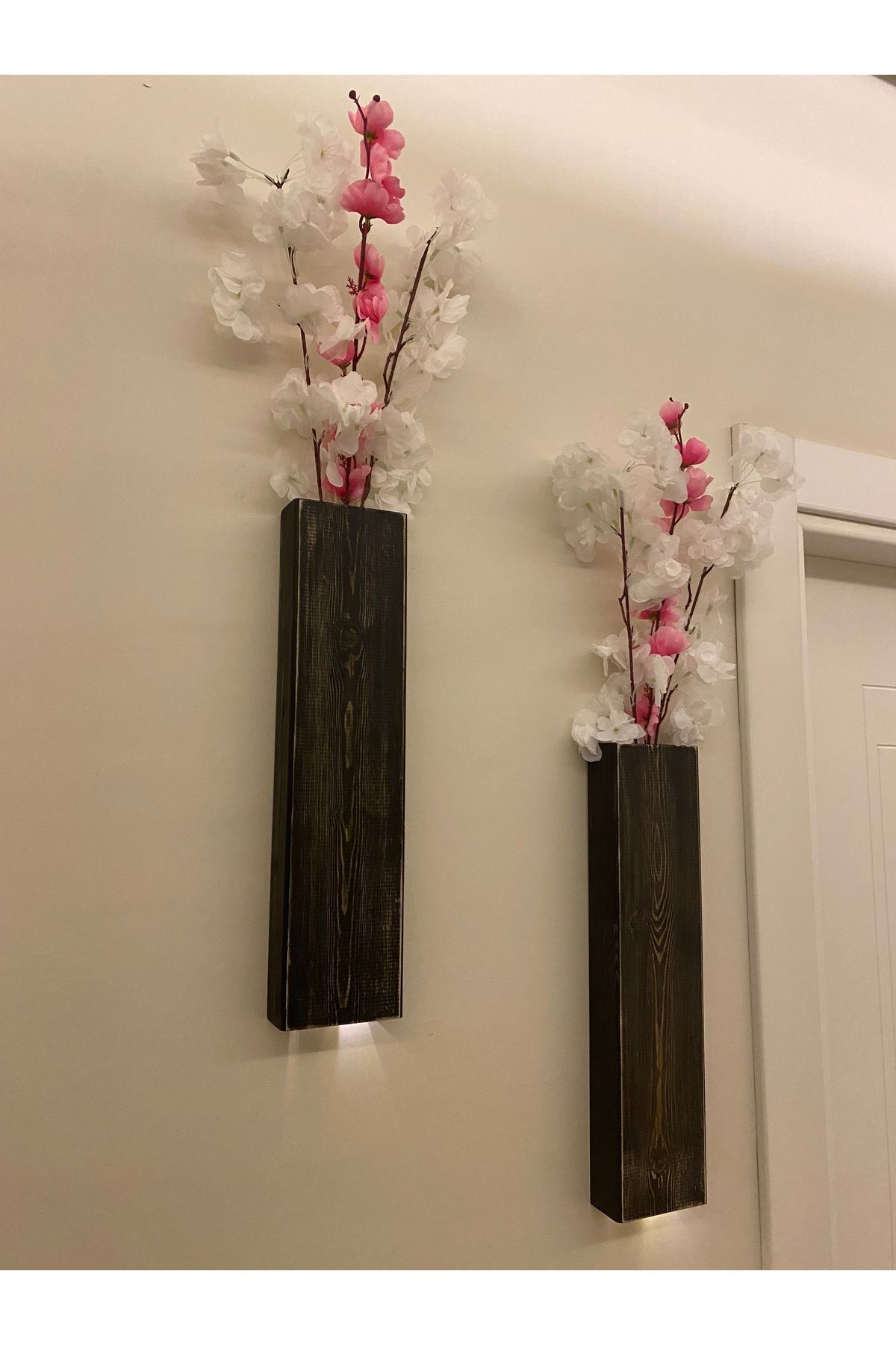 2 Li Lüx Ahşap Çiçeklik Peri Ledli Aranjman Dekoratif Aydınlatma Ev Hediyesi Cafe Otel 40cm