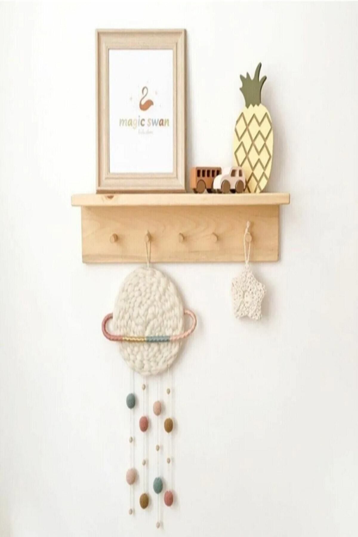 2 Li Lüx Ahşap Dekoratif Askılı Raf Bebek Odası Rafı Çocuk Odası Askısı 55 cm