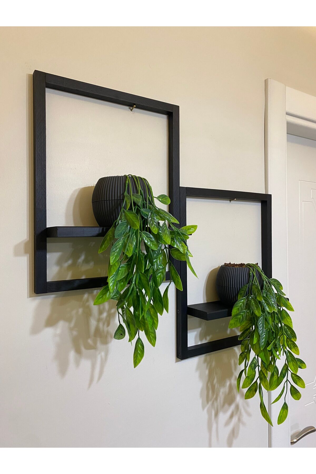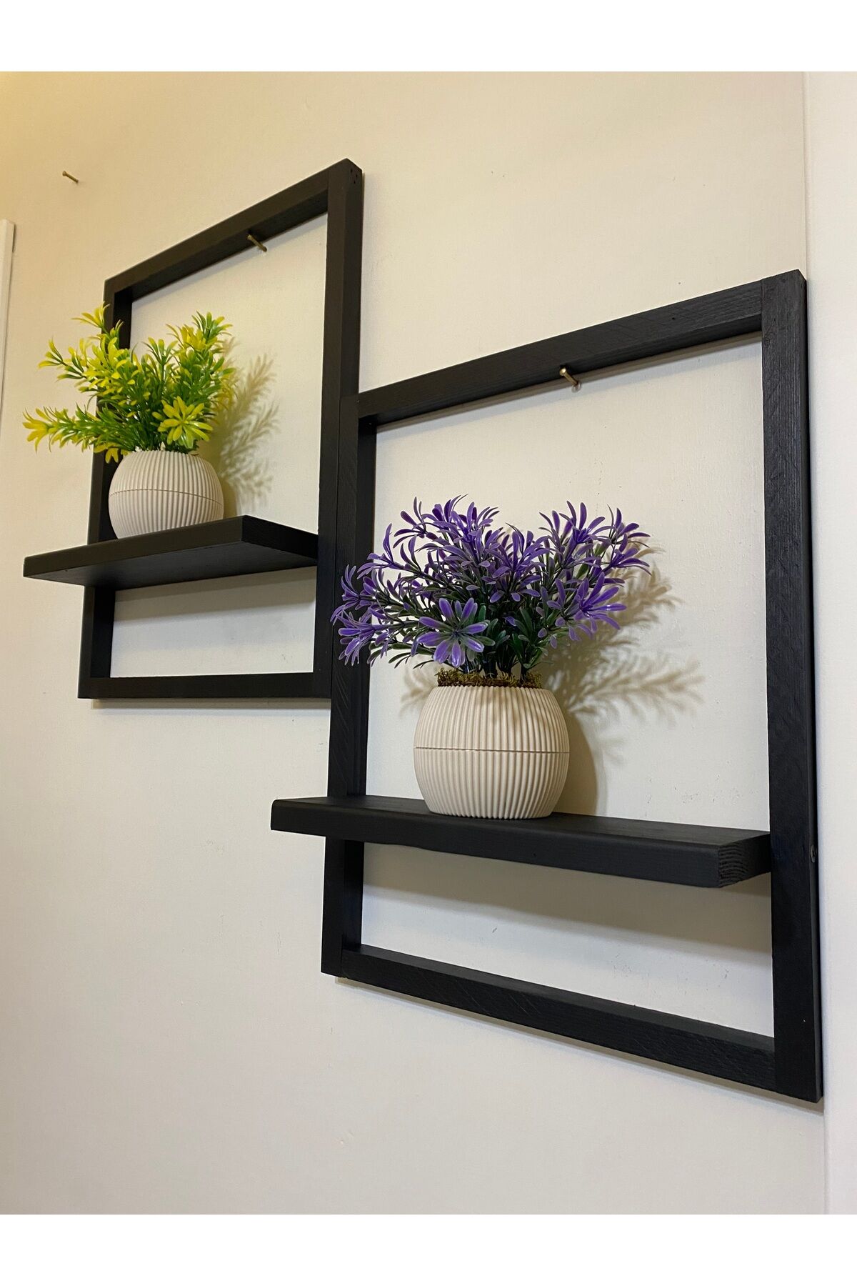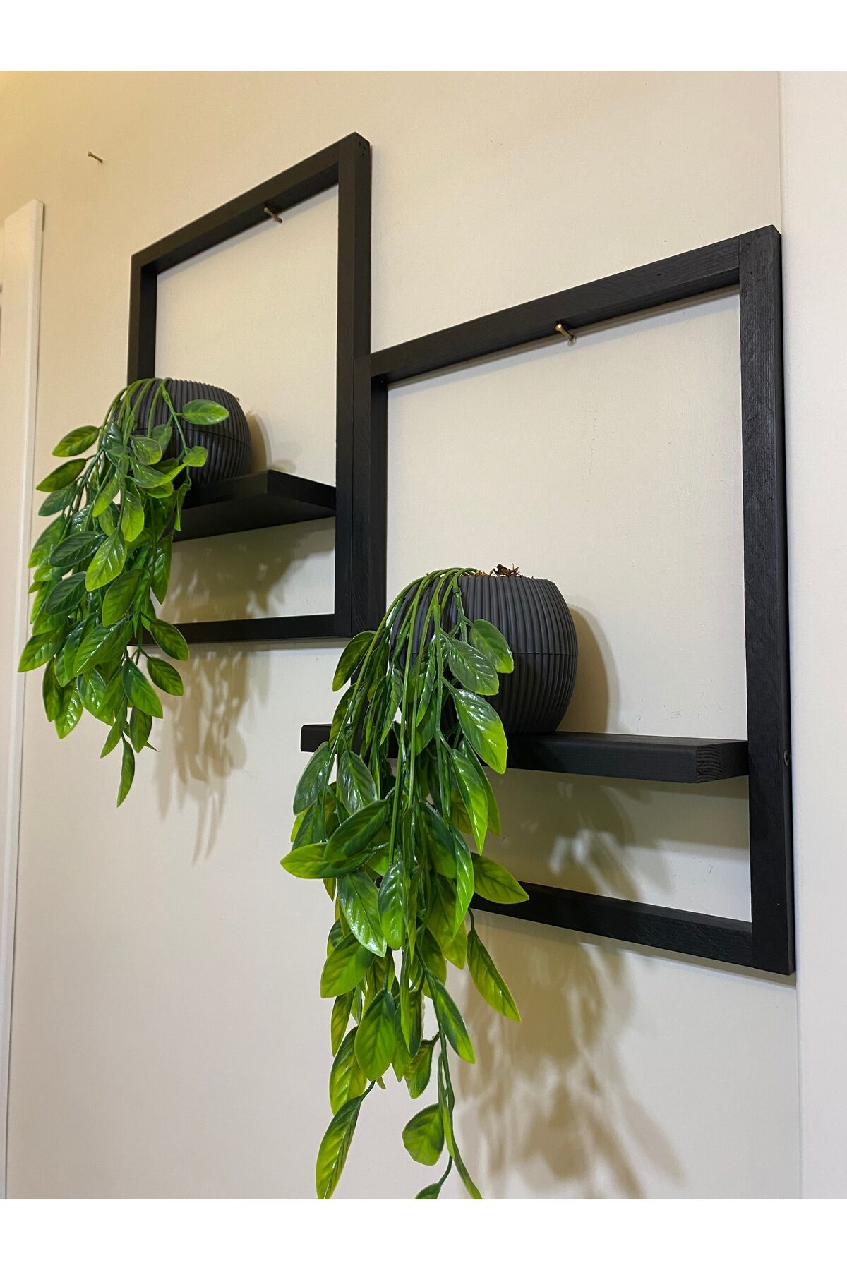 2' Li Lüx Dekoratif Siyah Ahşap Çerçeveli Raf Çiçeklik Duvar Süsü Ev Antre Hol Balkon Süsü