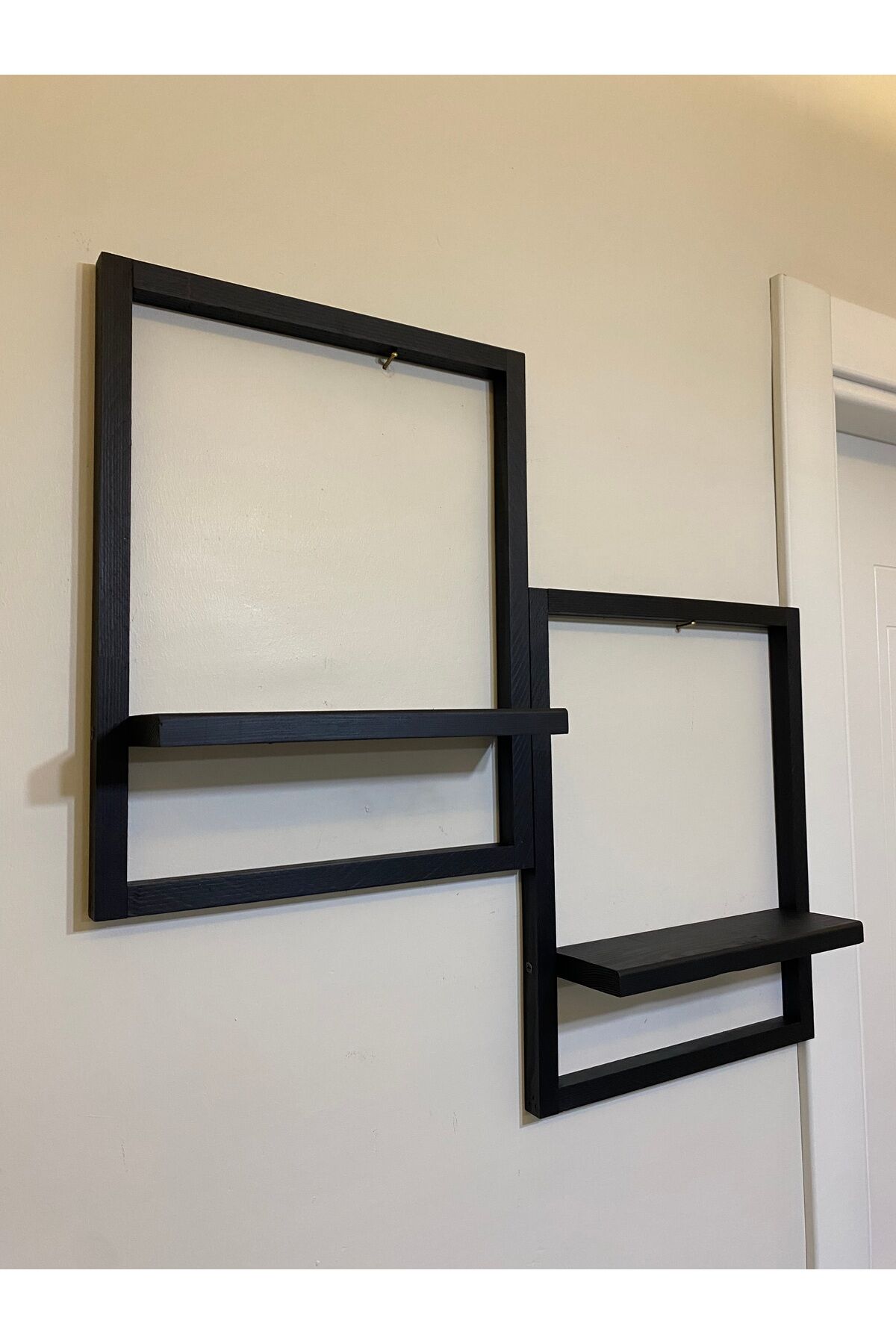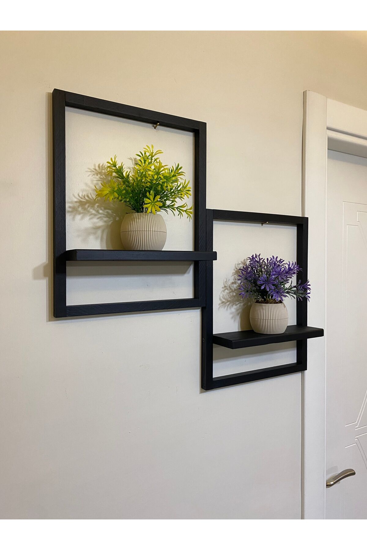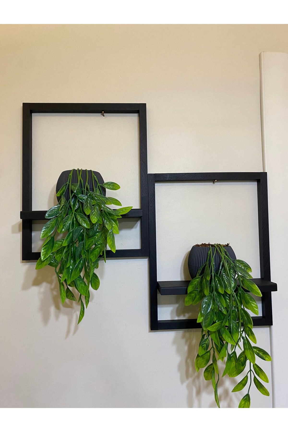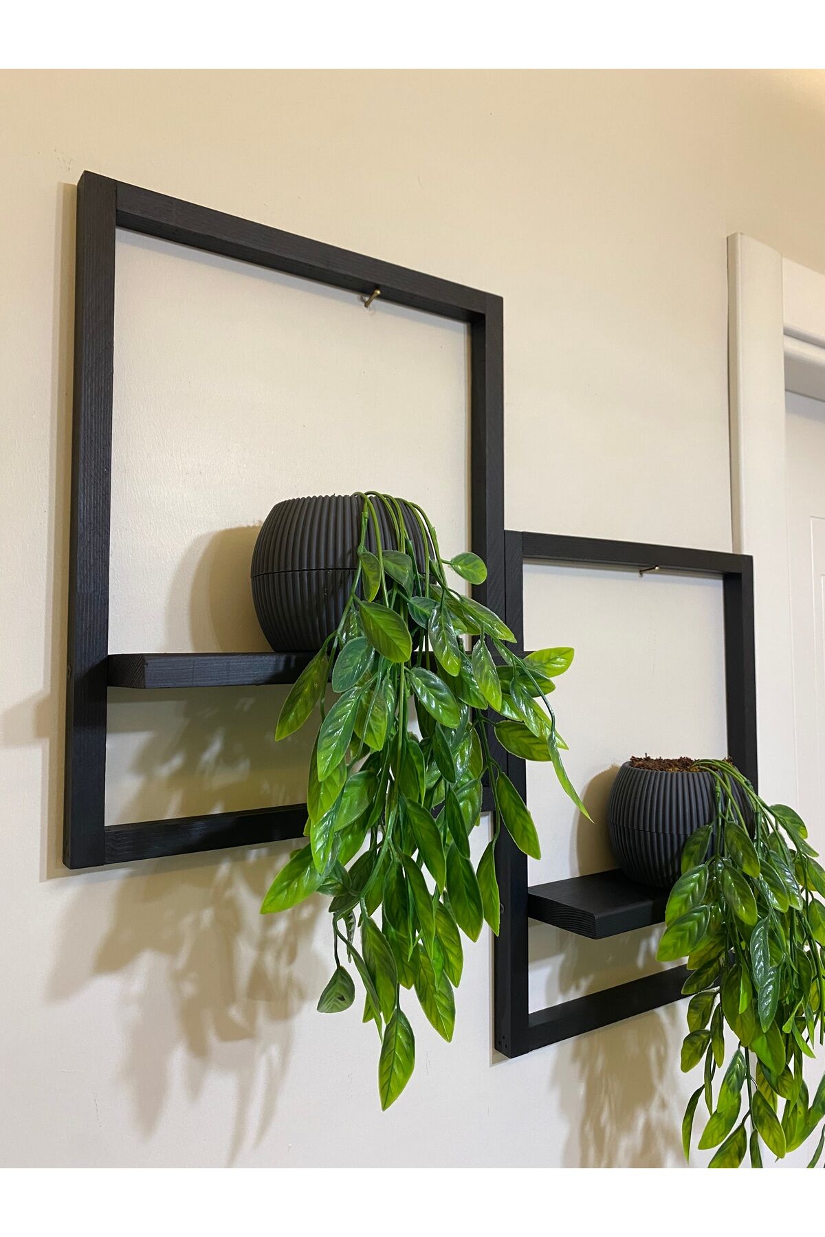 2' Li Lüx Dekoratif Siyah Ahşap Çerçeveli Raf Çiçeklik Duvar Süsü Ev Antre Hol Balkon Süsü