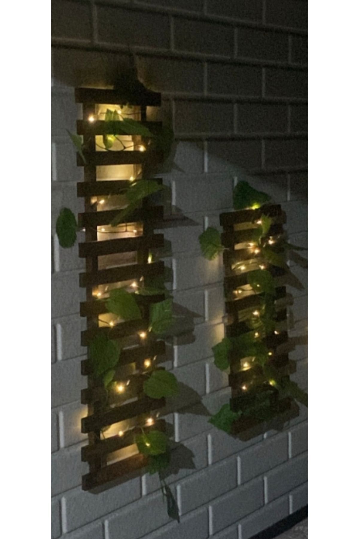 2 Li Peri Ledli Sarmaşıklı Ahşap Çiçeklik Balkon Dekor Duvar Dekor Yapay Çiçek Antre Hol