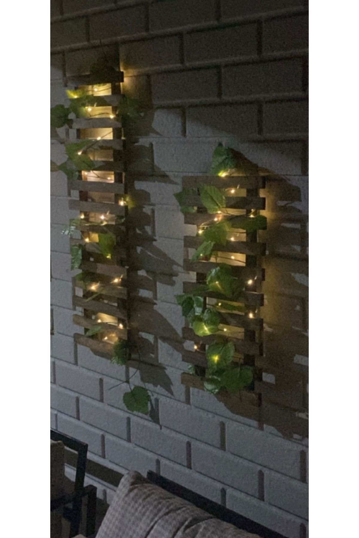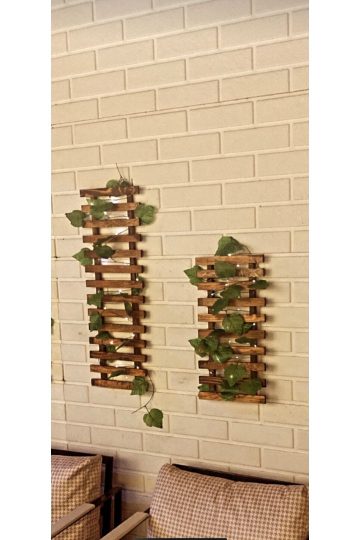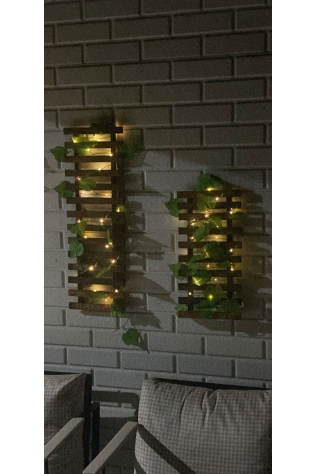 2 Li Peri Ledli Sarmaşıklı Ahşap Çiçeklik Balkon Dekor Duvar Dekor Yapay Çiçek Antre Hol