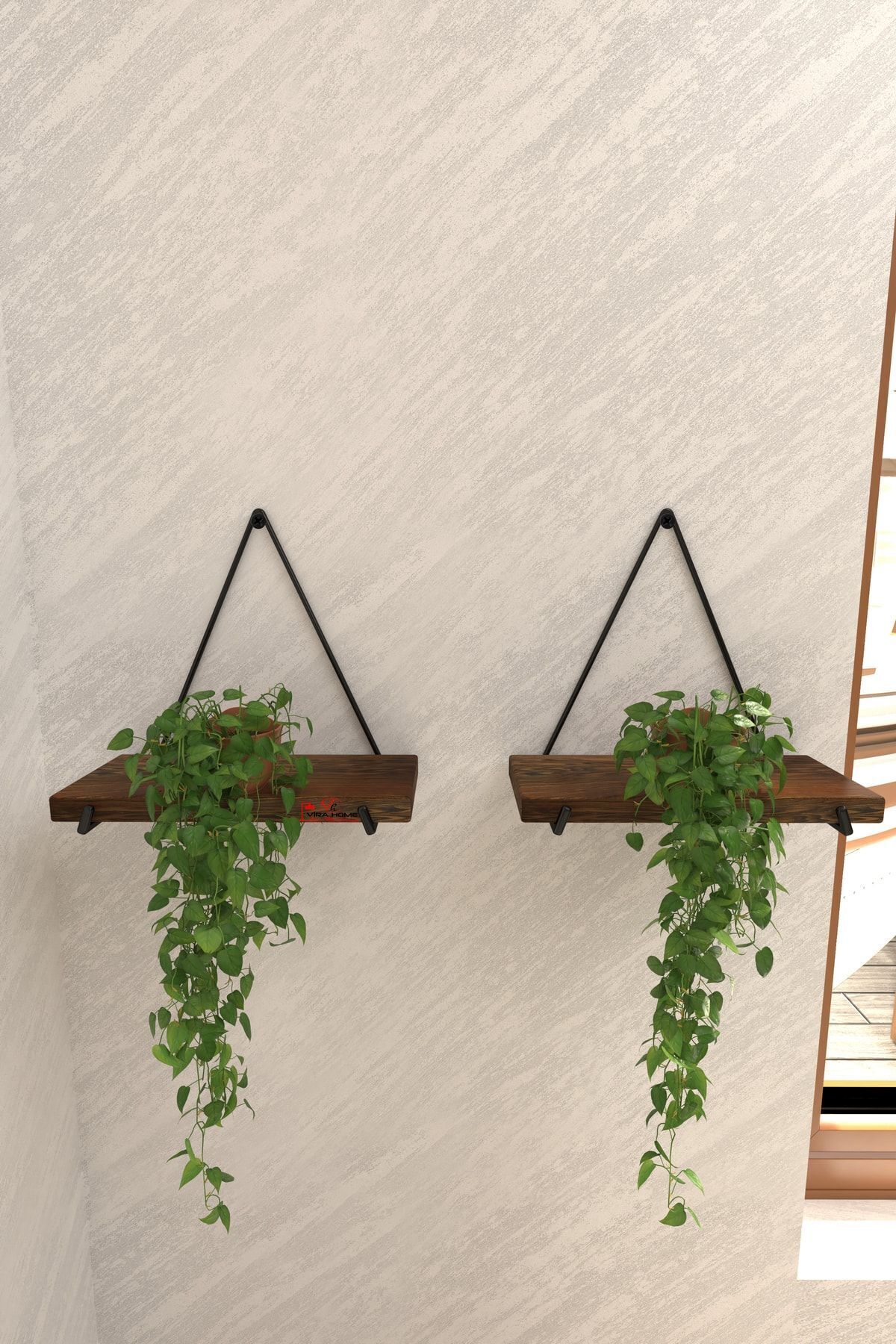 2 Li Üçgen Masif Ahşap Dekoratif Raf Balkon Rafı Tanzim Çiçeklik
