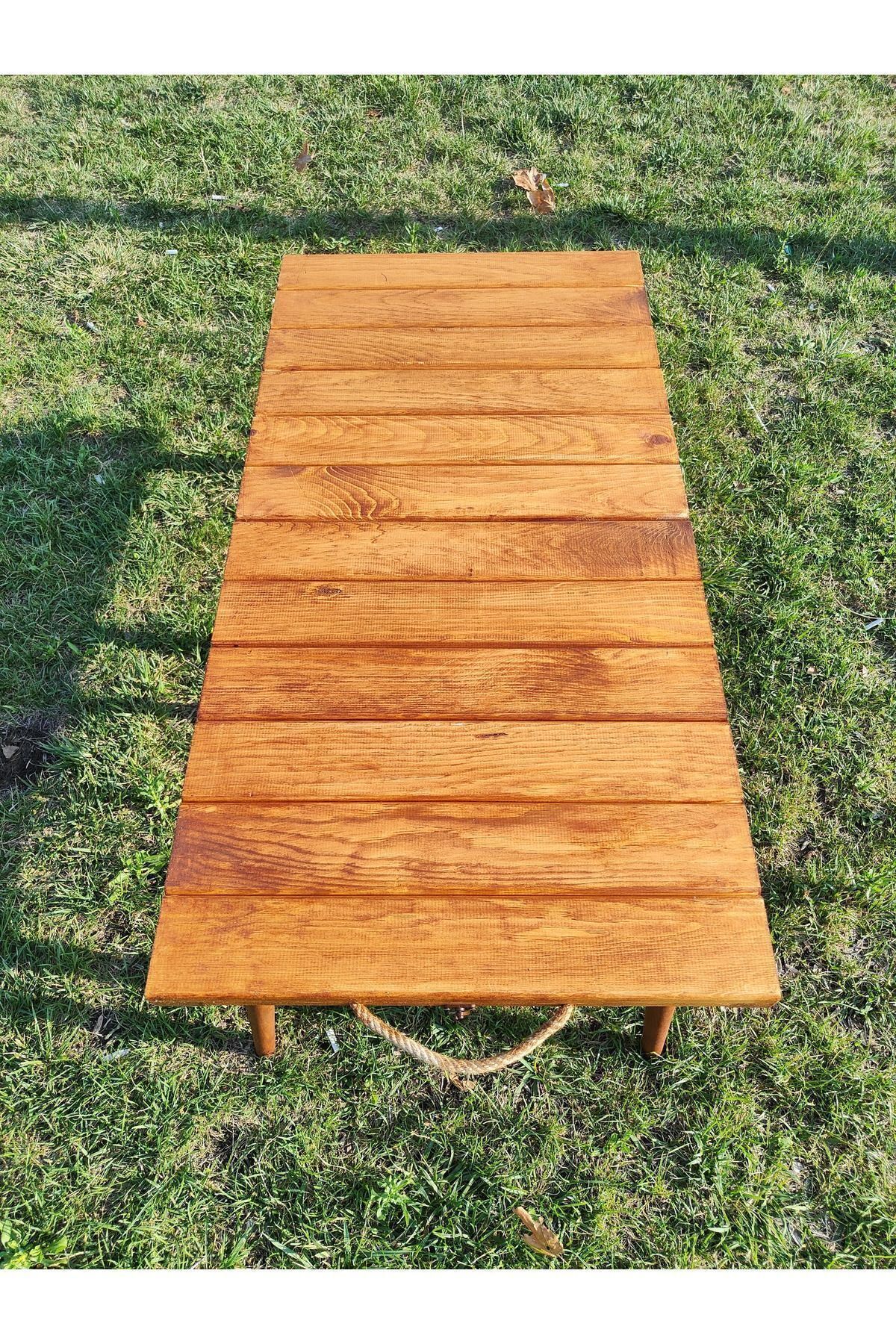 - Doğal ahşap malzemesiyle üretilmiş, dayanıklı ve uzun ömürlü kullanım sunar; - 50x100 cm boyutlarındaki geniş yüzeyi ile geniş bir kullanım alanı sağlar, piknik ve kamp aktivitelerinizde rahatça yemek yiyebilirsiniz; - Kolay katlanabilir tasarımı sayesinde taşıması pratiktir ve depolama alanından tasarruf etmenizi sağlar; - Meşe ağacından üretilmiş olması, masaya doğal bir görünüm kazandırırken aynı zamanda estetik bir dokunuş sunar;