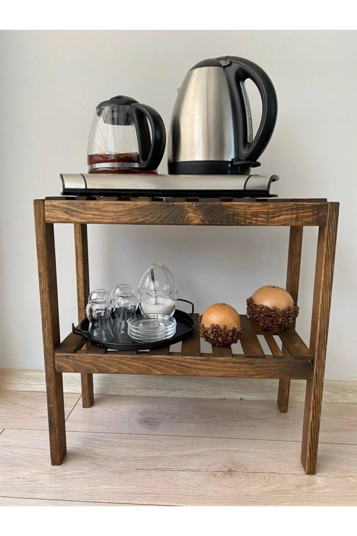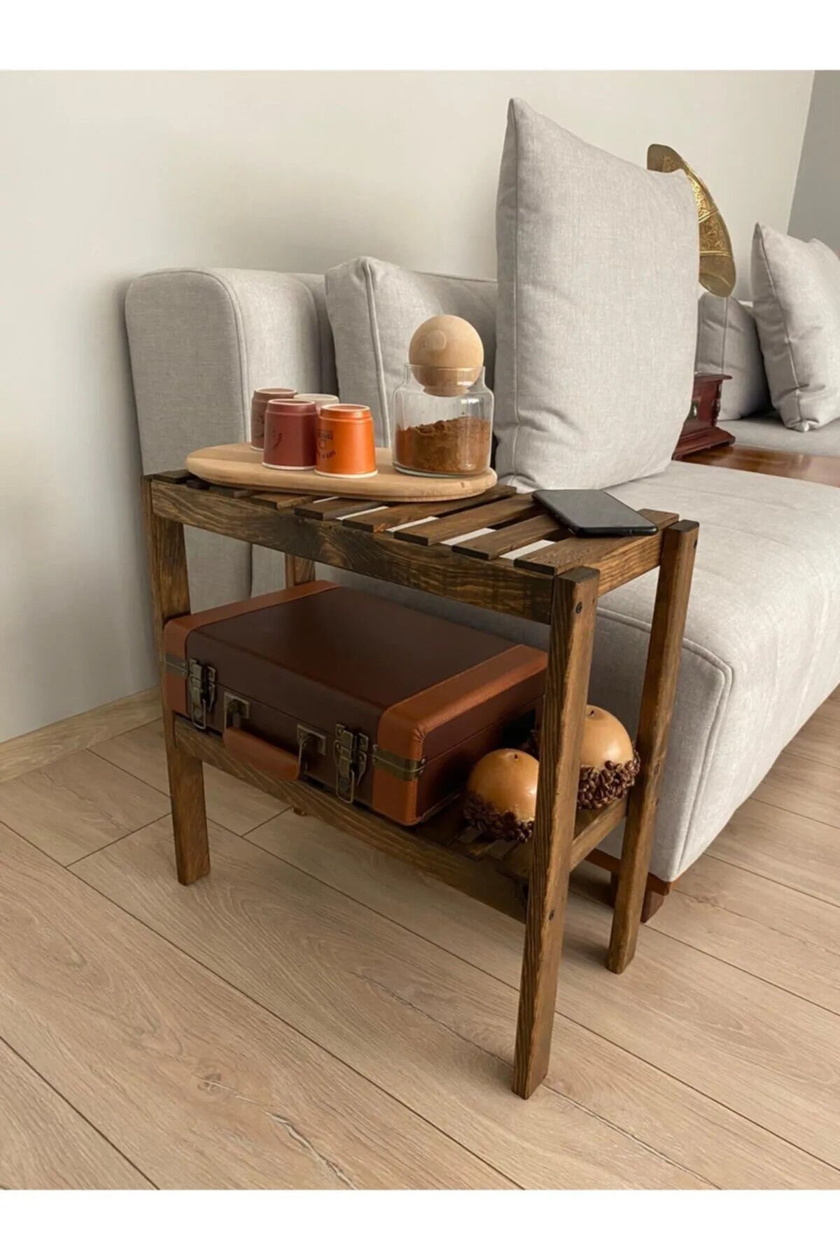 Aa Kalite Doğal Masif Kitaplık 2 Katlı Raf Çiçeklik Oturma Odası Ev Hediyesi Yan Sehpa Saksılık