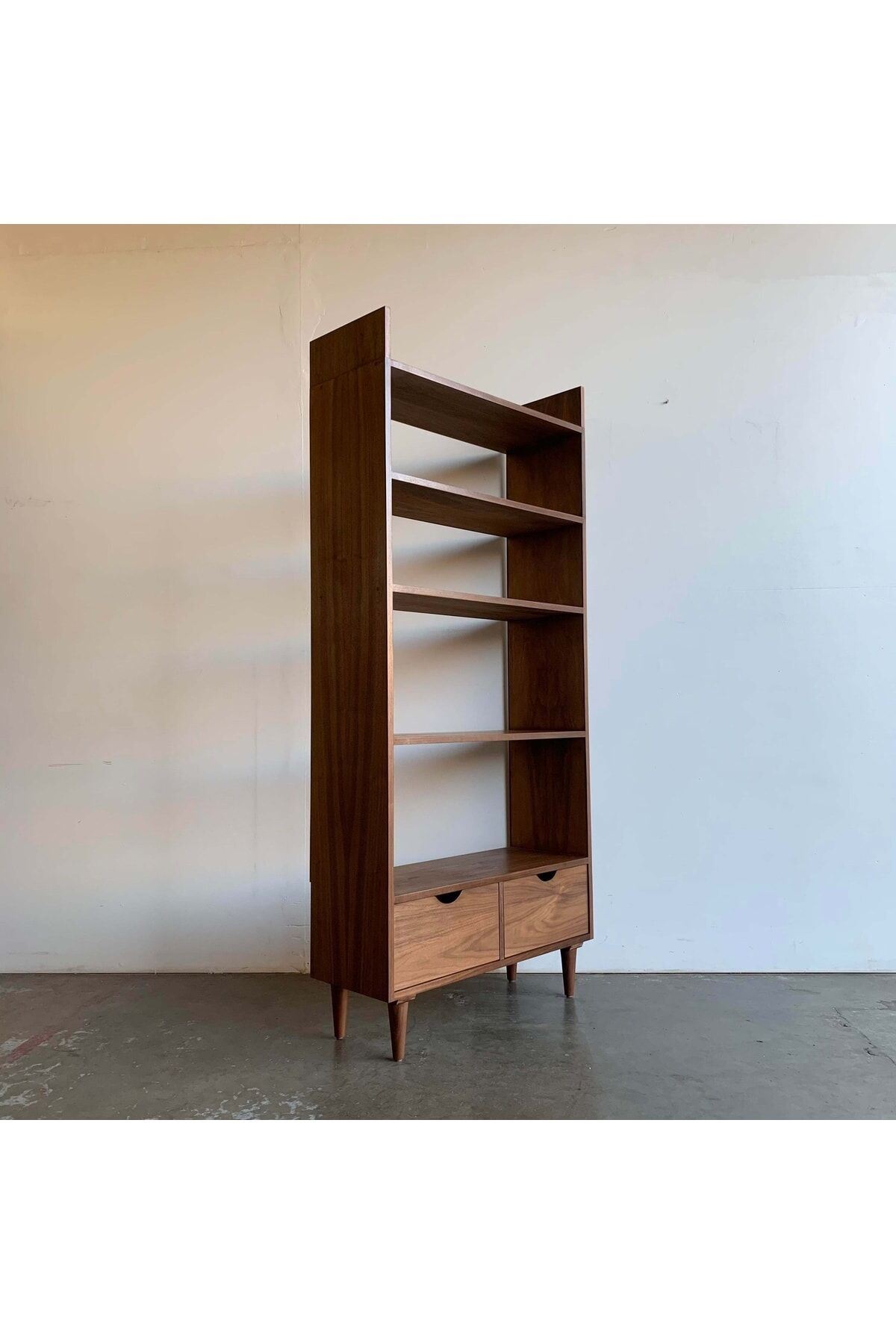 Ahşap Çift Çekmeceli Koyu Ceviz Model Kitaplık