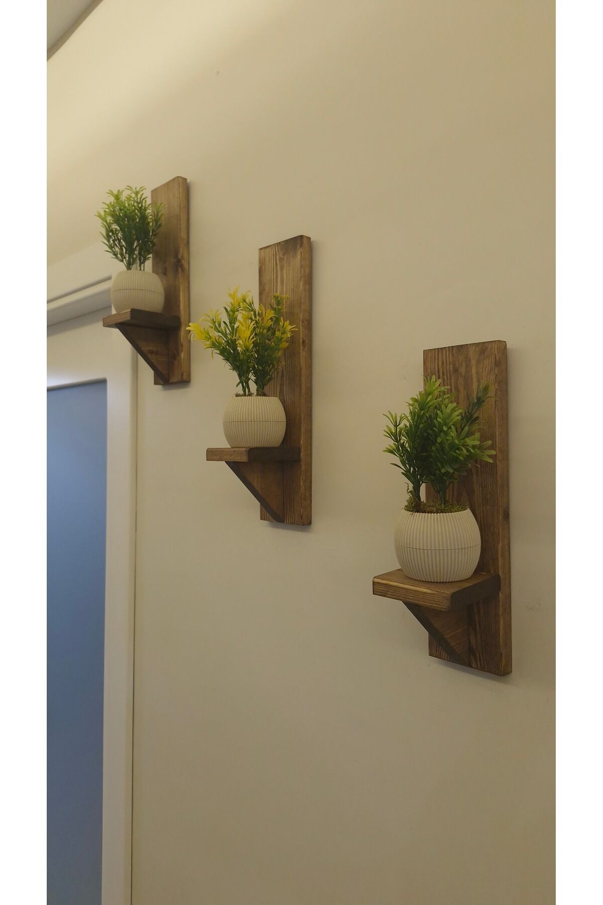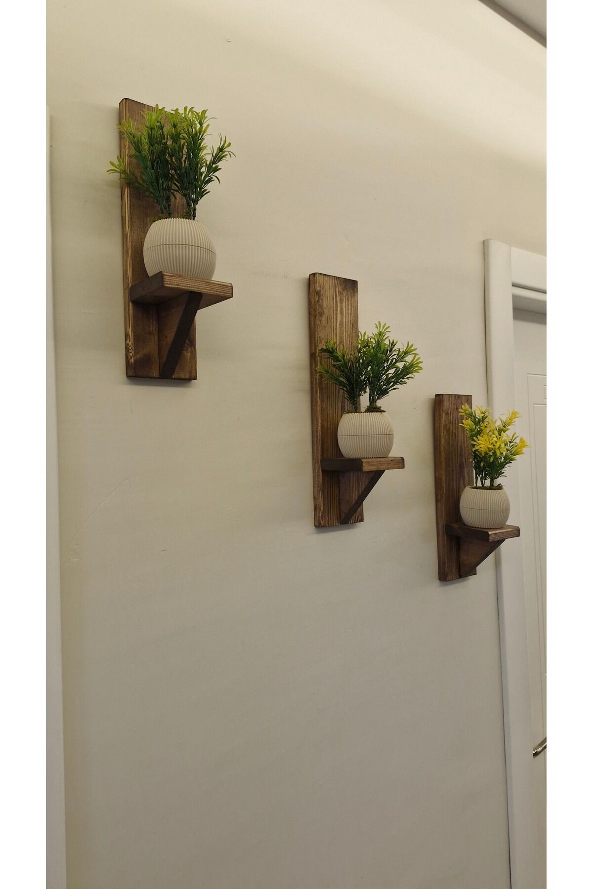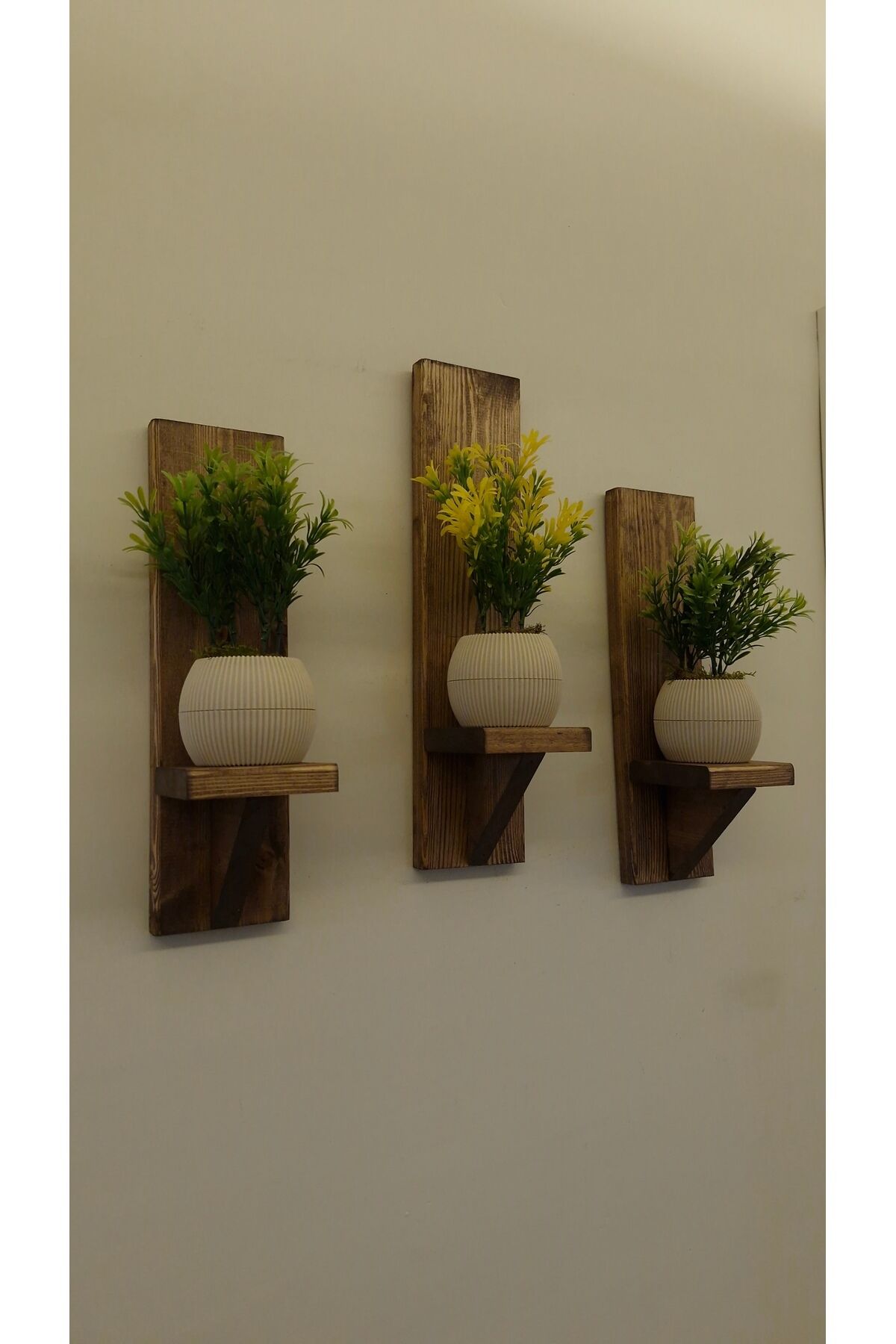 Dekoratif Ahşap Duvar Rafı Balkon Rafı Saksılık Rustik 3 adet