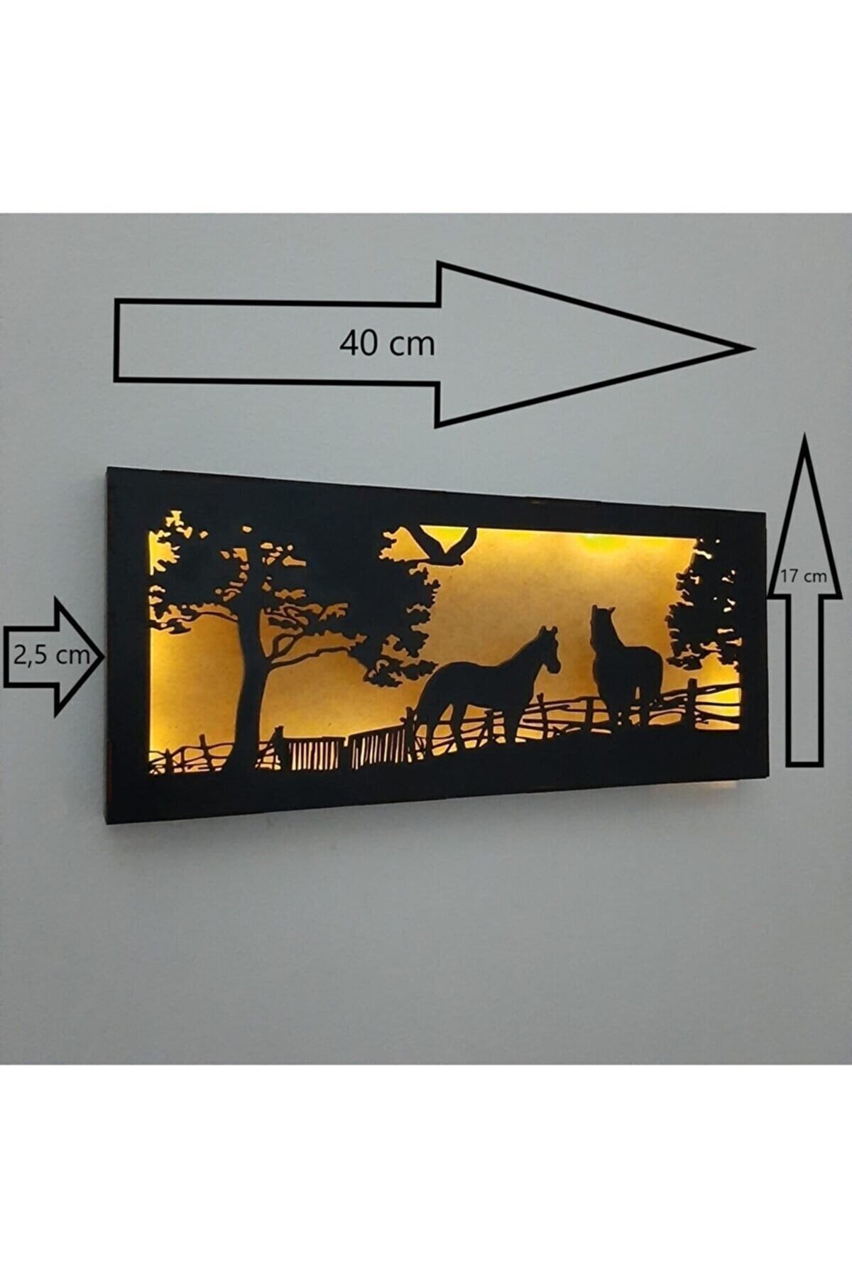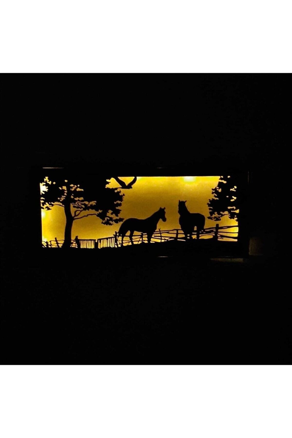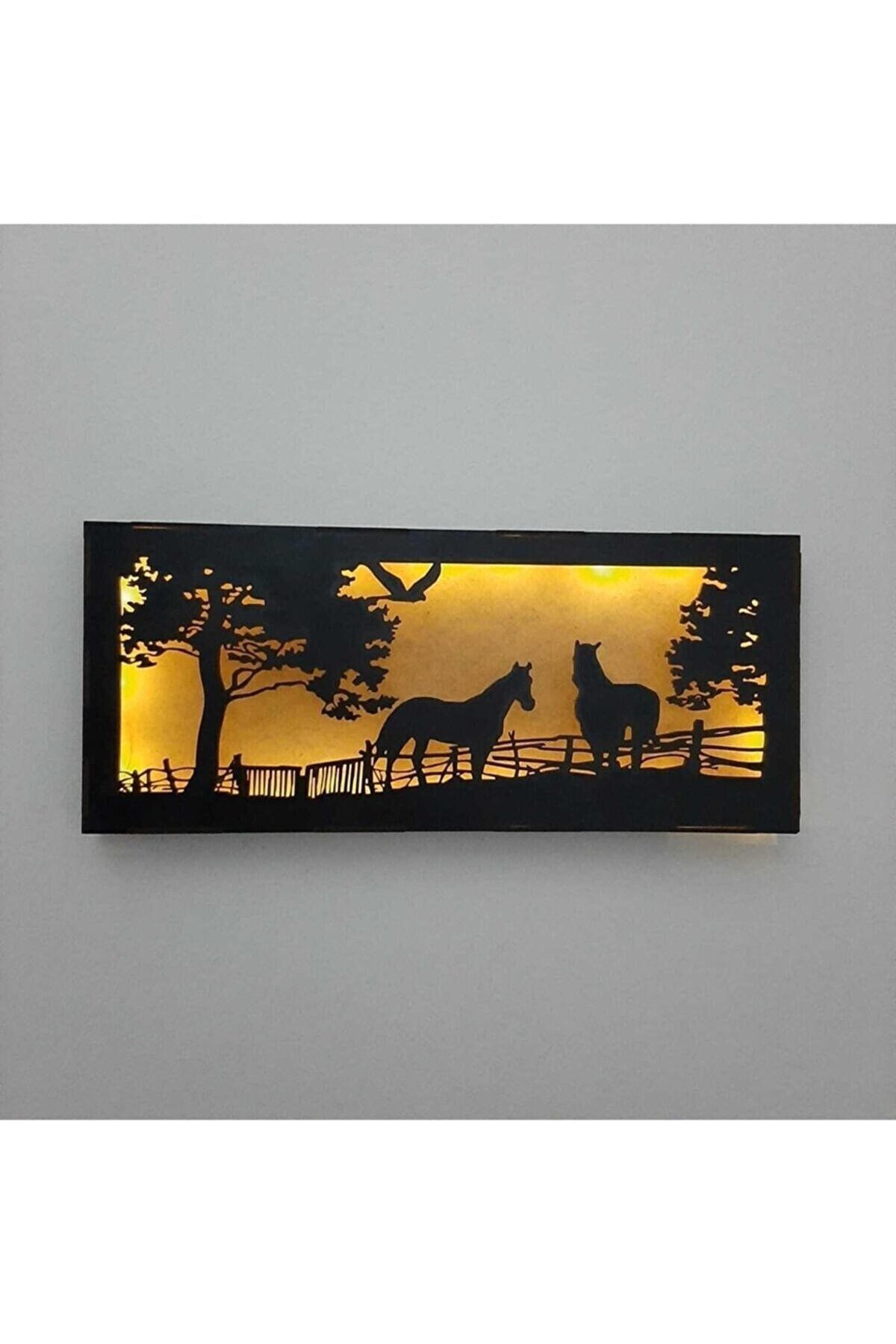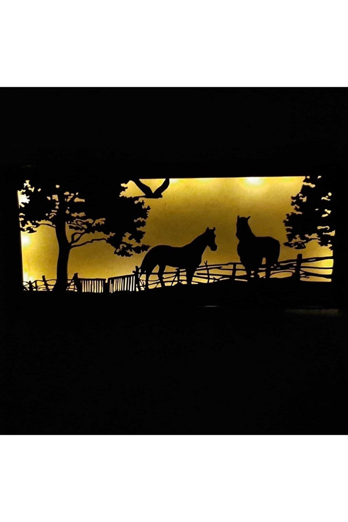 Dekoratif Ledli Duvar Süsü At Çiftliği Figürlü Hediyelik Ahşap Mdf Tablo Gece Lambası Piller Dahil