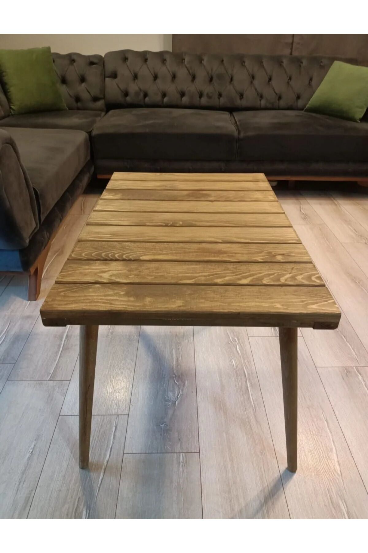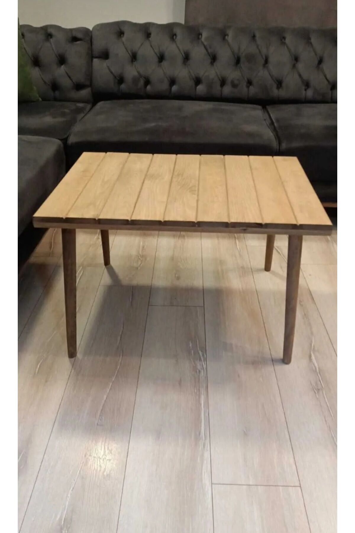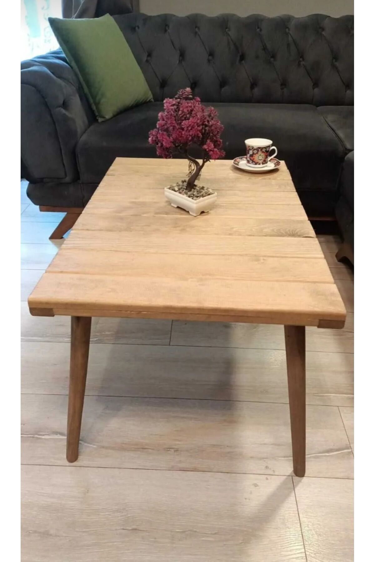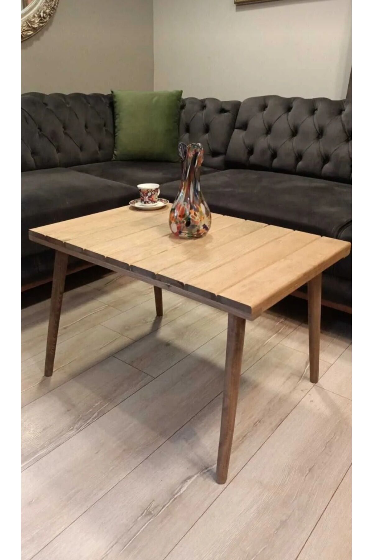 Dekoratif Masif Ahşap Orta Sehpa Demonte Konik Ayak Kolay Kurulum 50x75cm