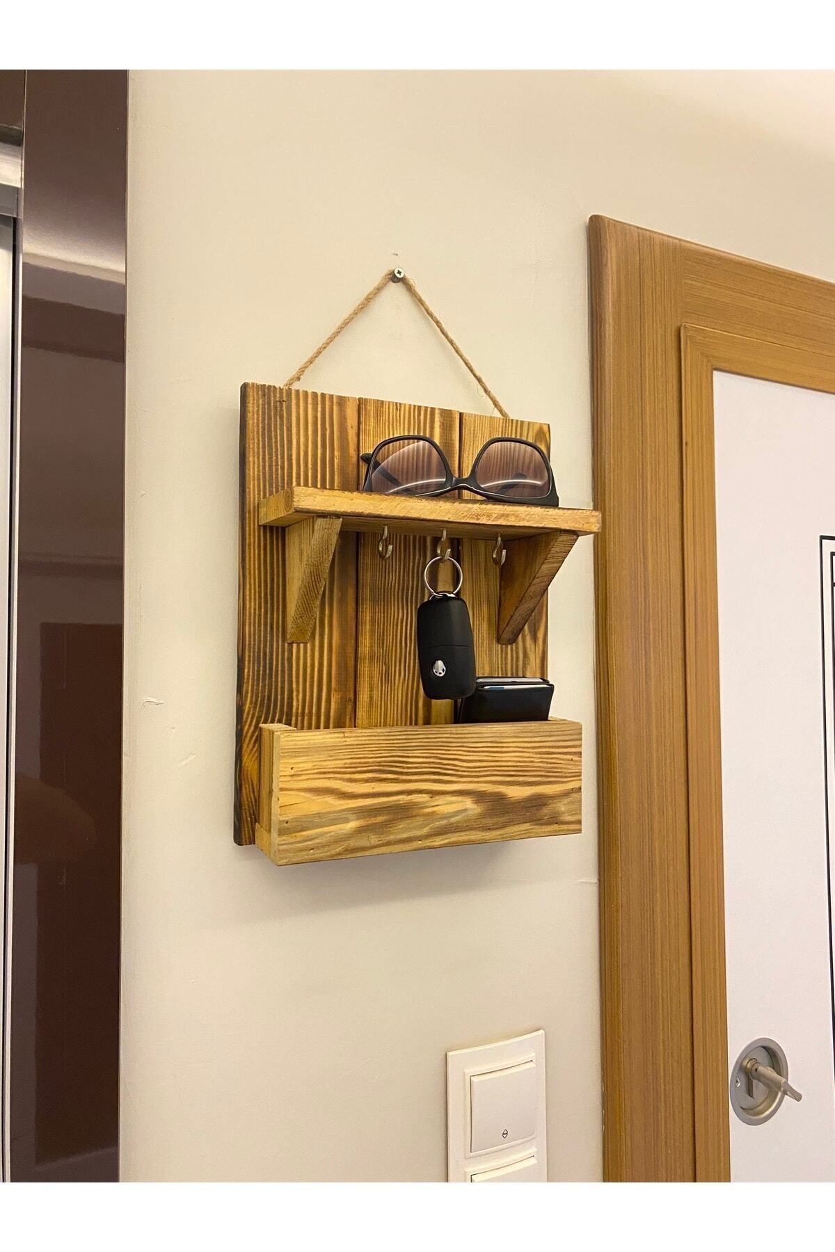 Doğal ahşap malzemesiyle hem dayanıklı hem de estetik bir görünüm sunar; Duvara monte edilebilir tasarımı sayesinde yerden tasarruf sağlar ve pratik kullanım imkanı tanır; Çok amaçlı yapısı ile anahtarlarınızı, cüzdanınızı ve diğer küçük eşyalarınızı düzenli bir şekilde saklamanızı sağlar;