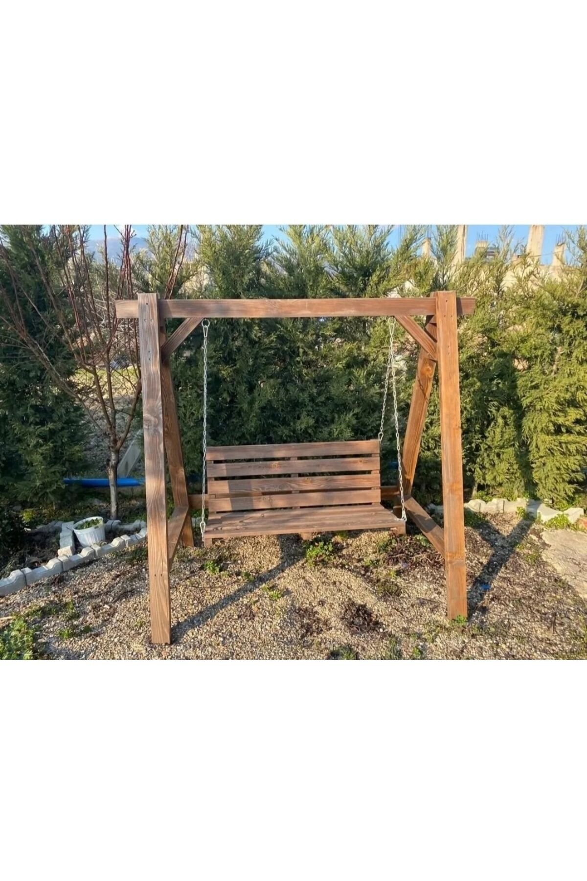 Doğal Ahşap Salıncak Bahçe Teras Salıncağı Ceviz renk