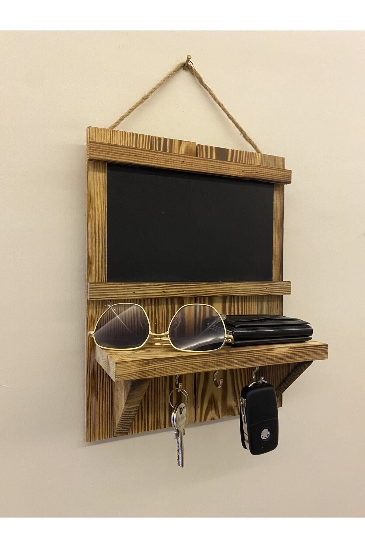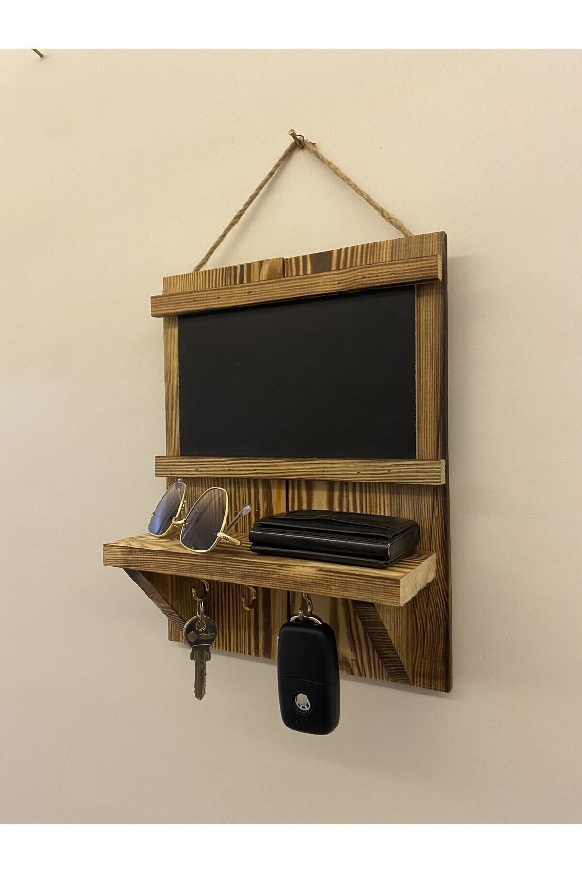 Doğal Ahşap Yazı Tahtalı Anahtarlık Anahtar Askısı Not Panosu