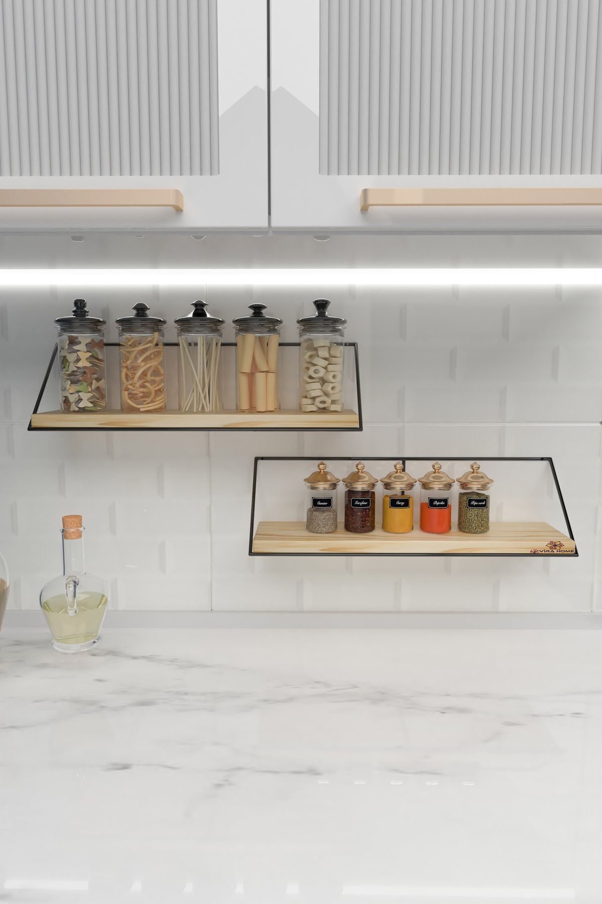 Ikili Masif Doğal Ahşap Duvar Rafı Kitaplık Terek Mutfak Rafı Dekoratif Raf Baharatlık