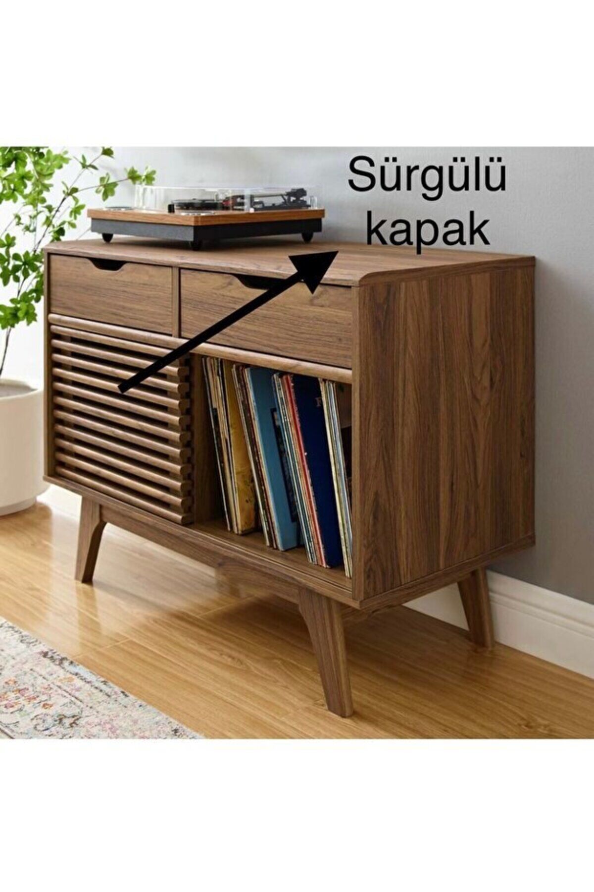 Lüks Masif Ahşap Konsol Pikap Dolabı Sürgülü Kapaklı Konsol Dresuar Plak Dolabı