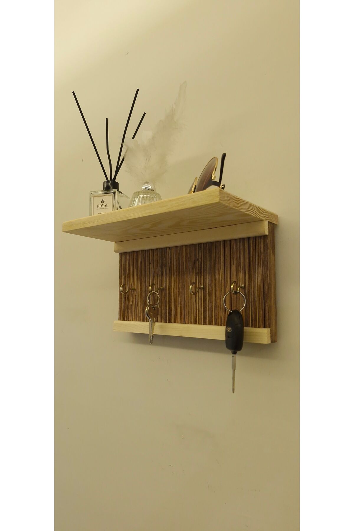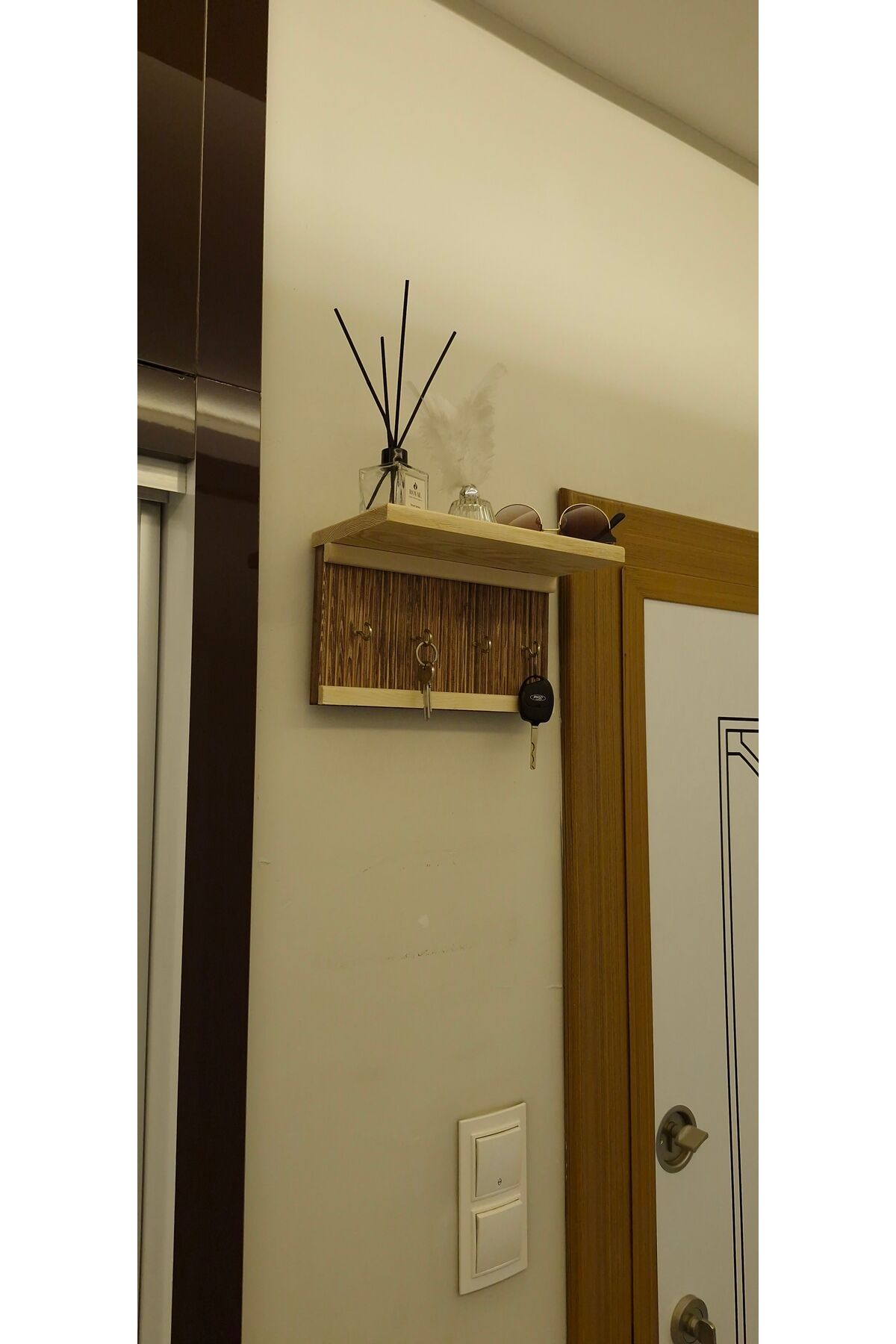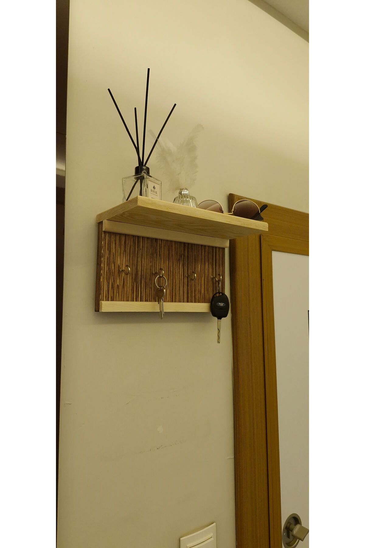 Lüks Modern Dekoratif Ahşap Raflı Anahtarlık Dekoratif Raf Ev Antre Hol Askılık