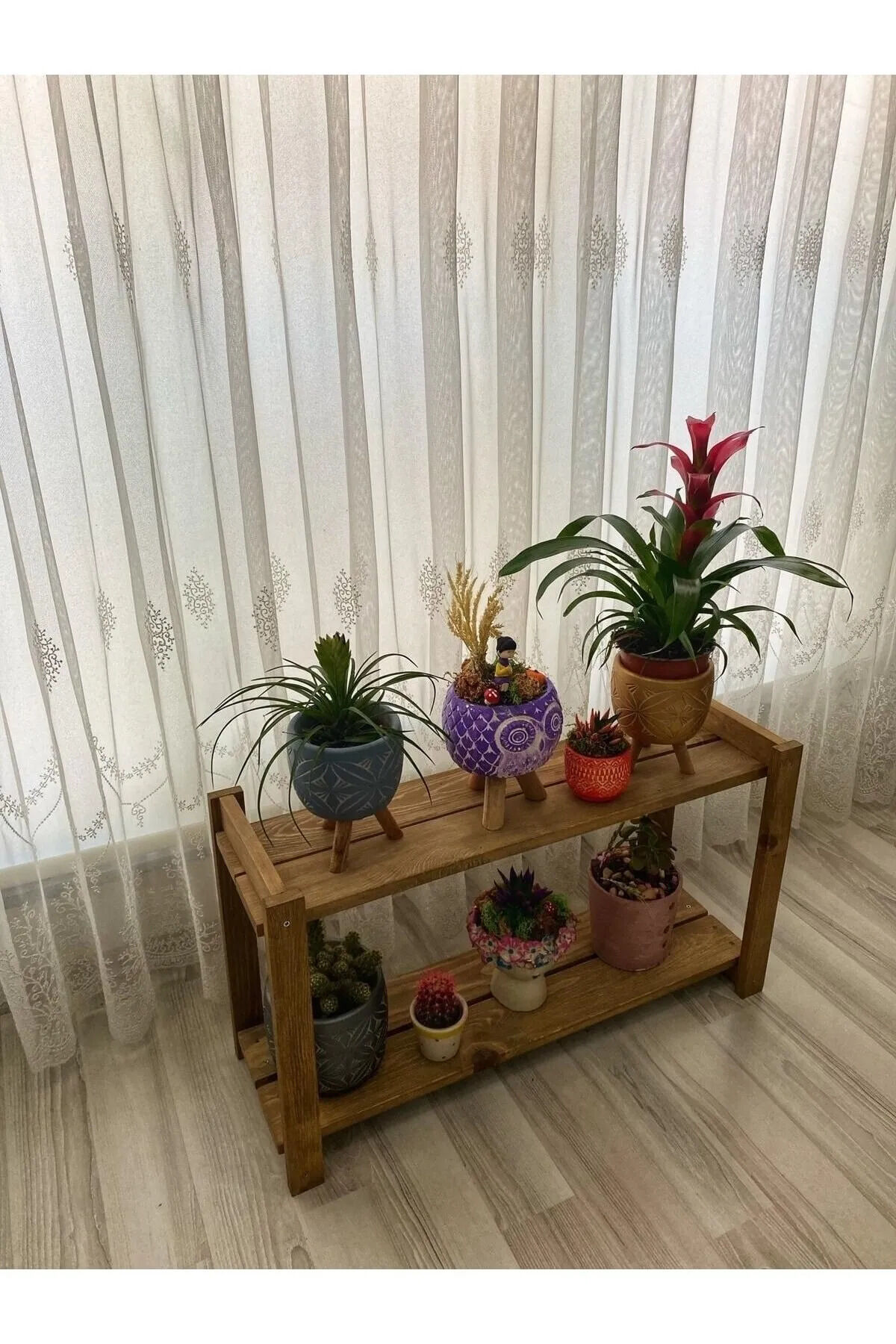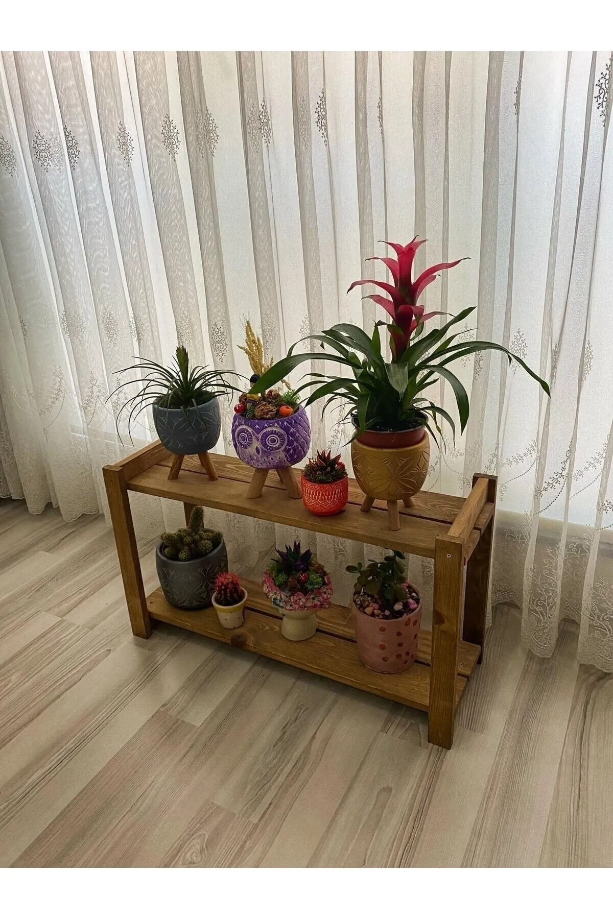 Lüx Ahşap Saksılık Çok Amaçlı Sehpa 2 Katlı Çiçeklik Saksı Düzenleyici