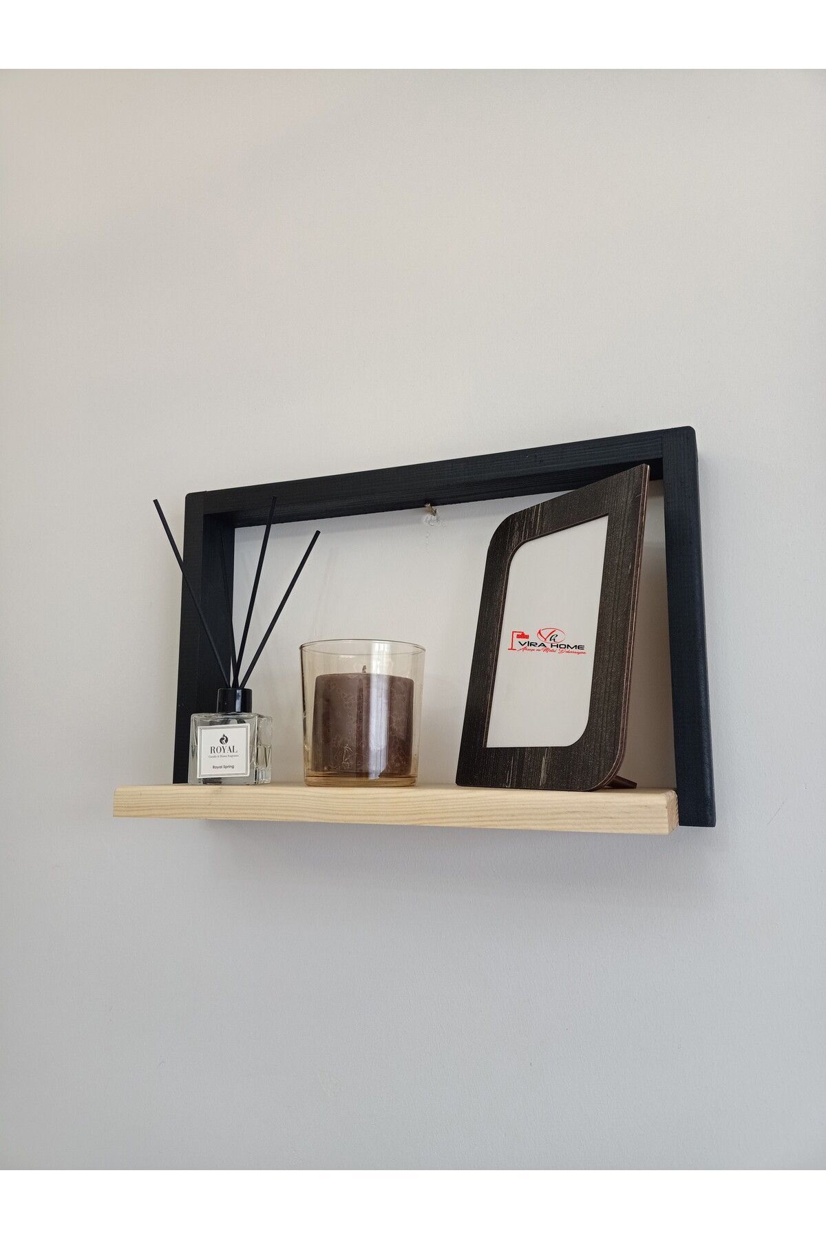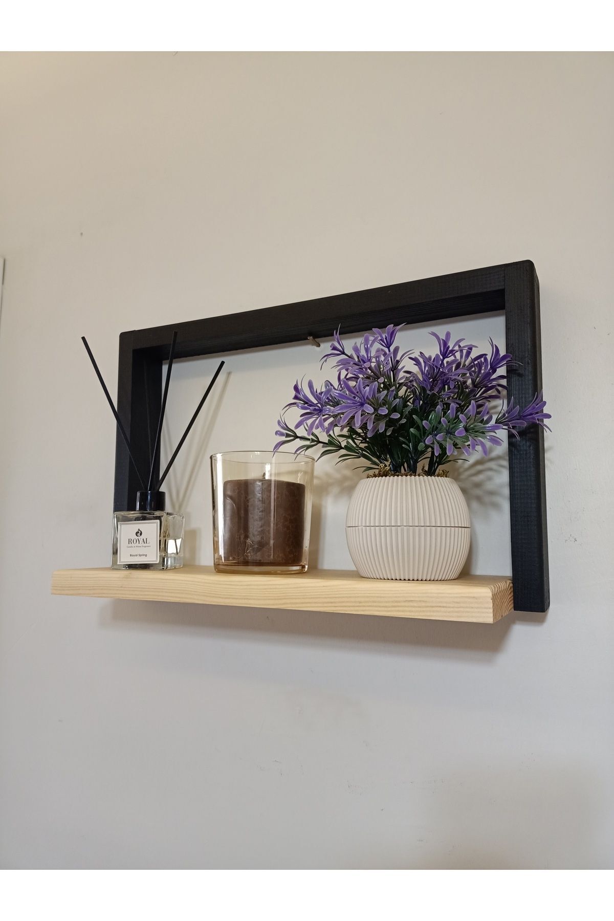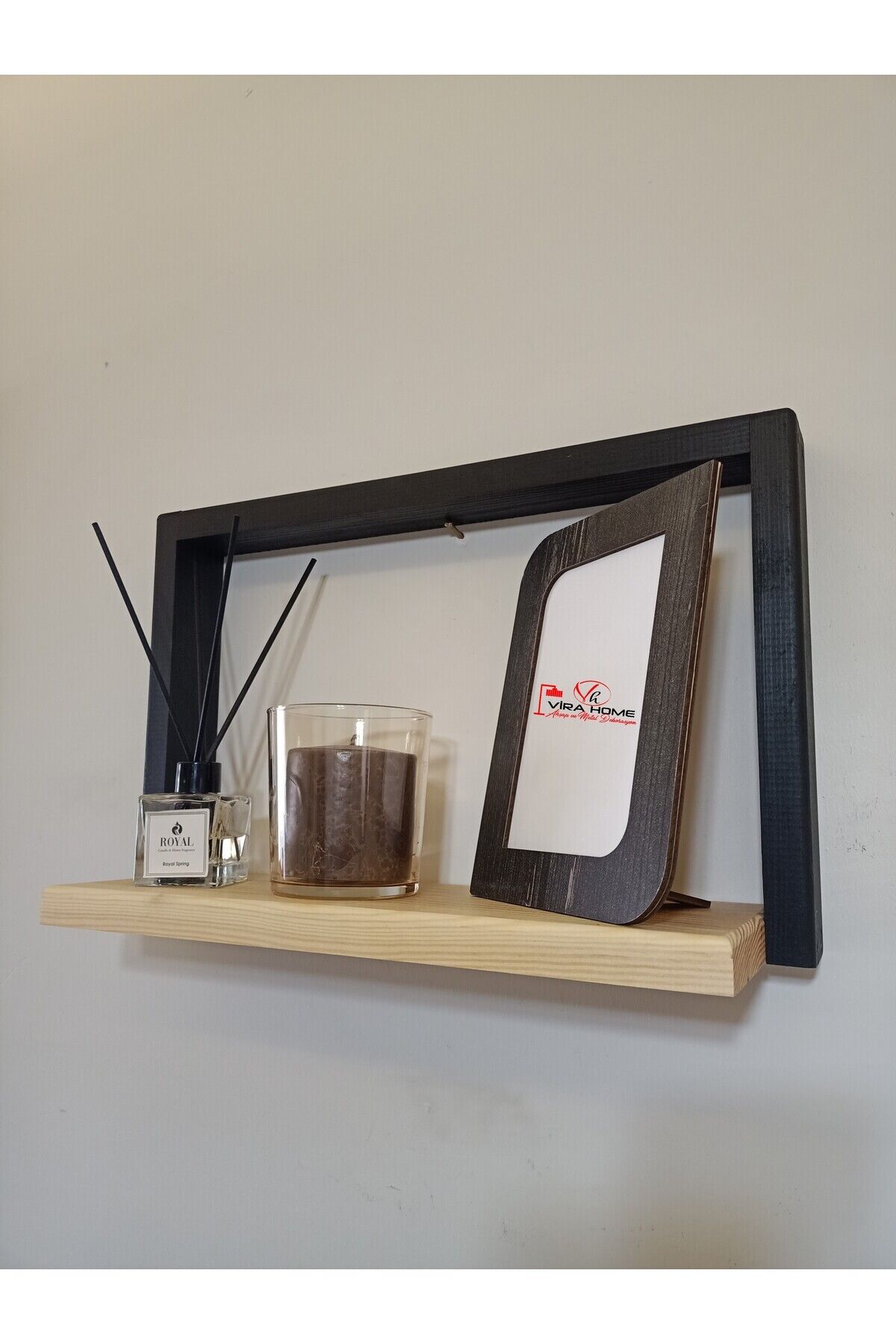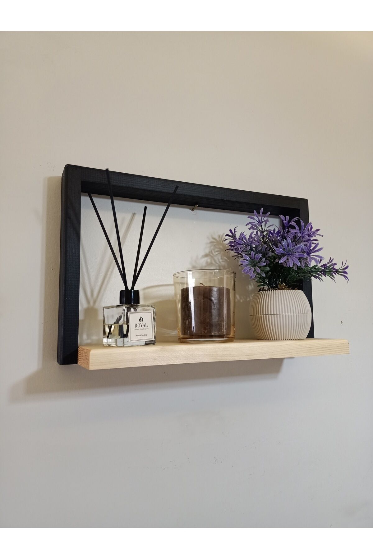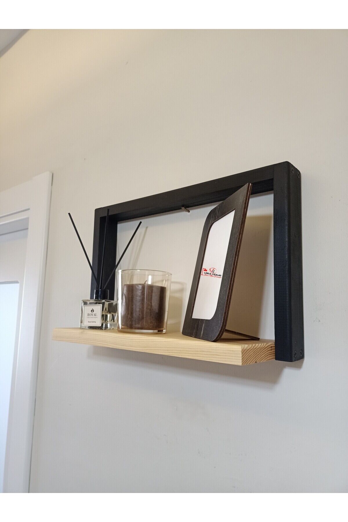 Lüx Dekoratif Ahşap Duvar Rafı Çiçeklik Fotoğraflık Duvar Dekoru Antre Hol Balkon Rafı Terek
