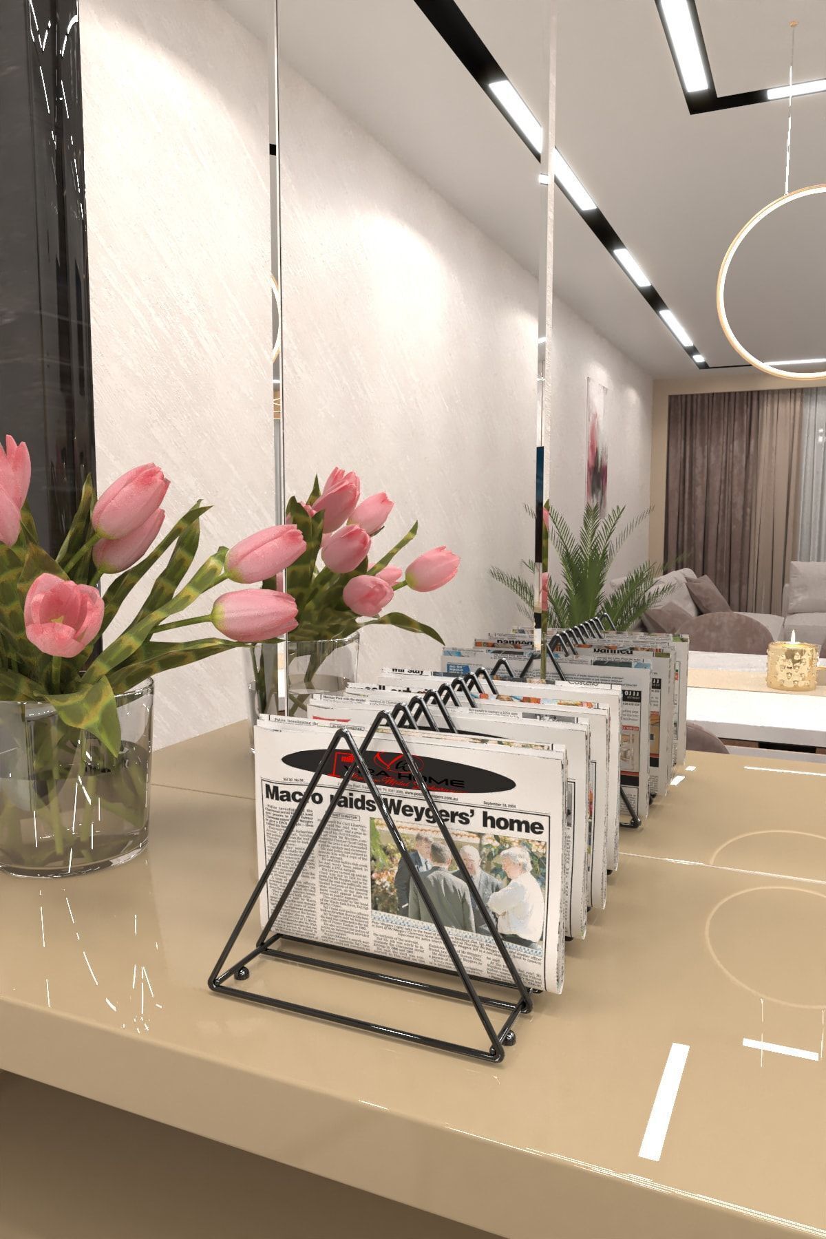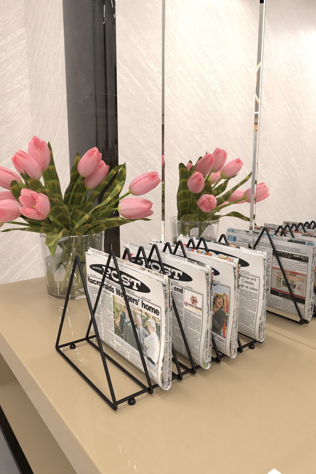 Masa Üstü Dergilik Plaklık 9 Bölmeli Üçgen Metal Kitaplık Organizer Gazetelik Düzenleyici
