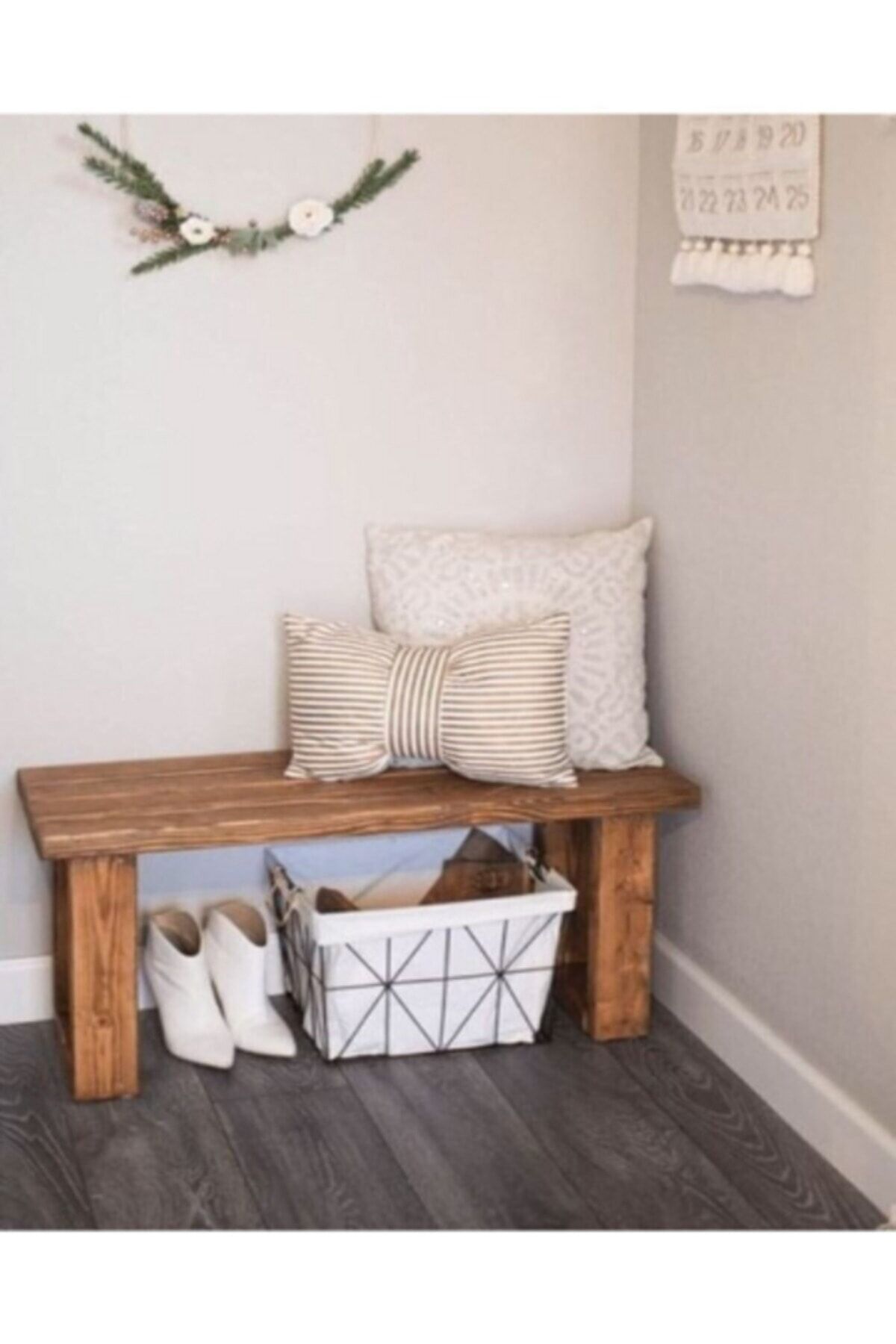 Masif Ahşap Bank & Bench Kapı Önü Antre Hol Dekoratif Oturak 120x30x h:40 cm
