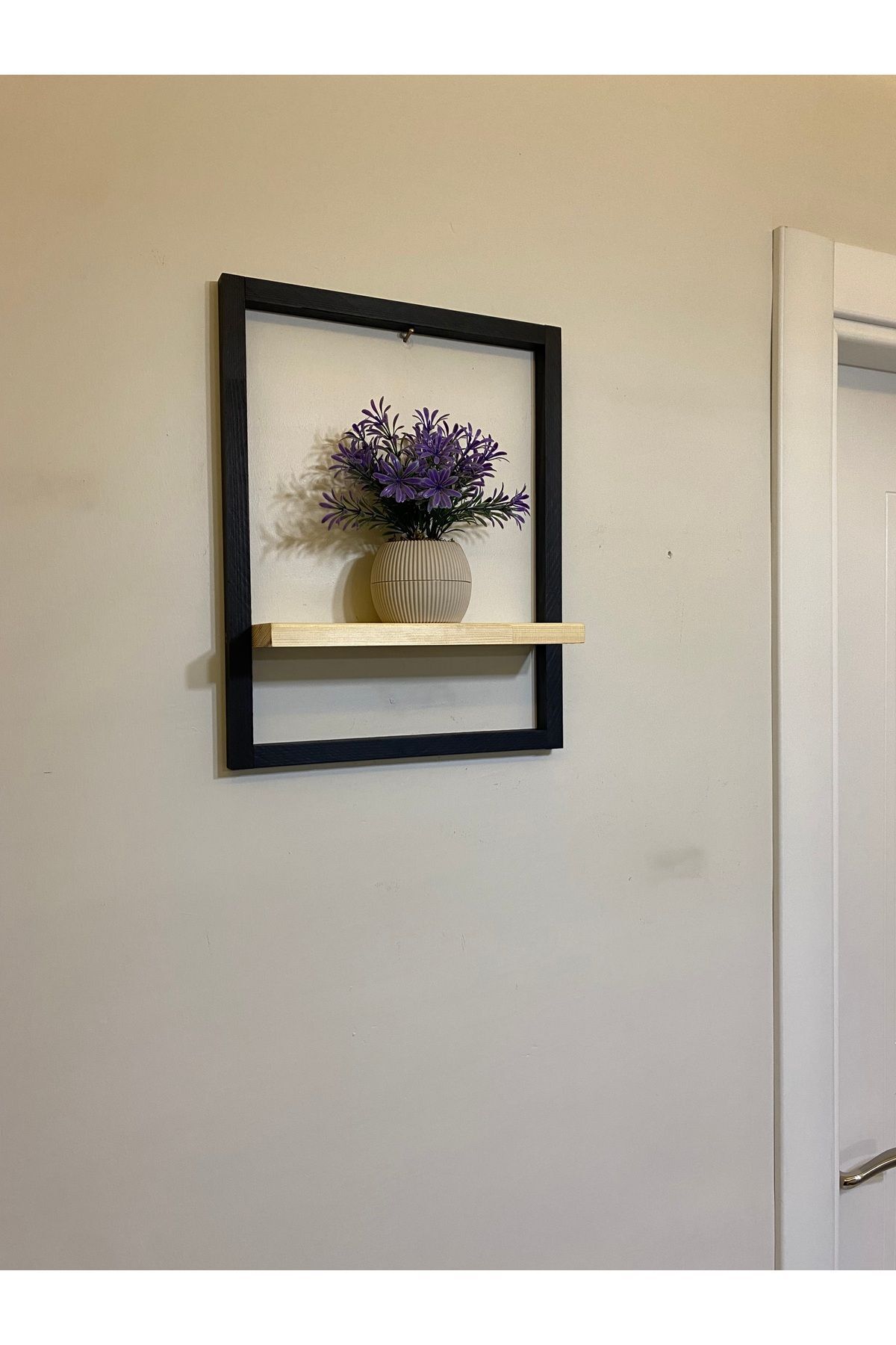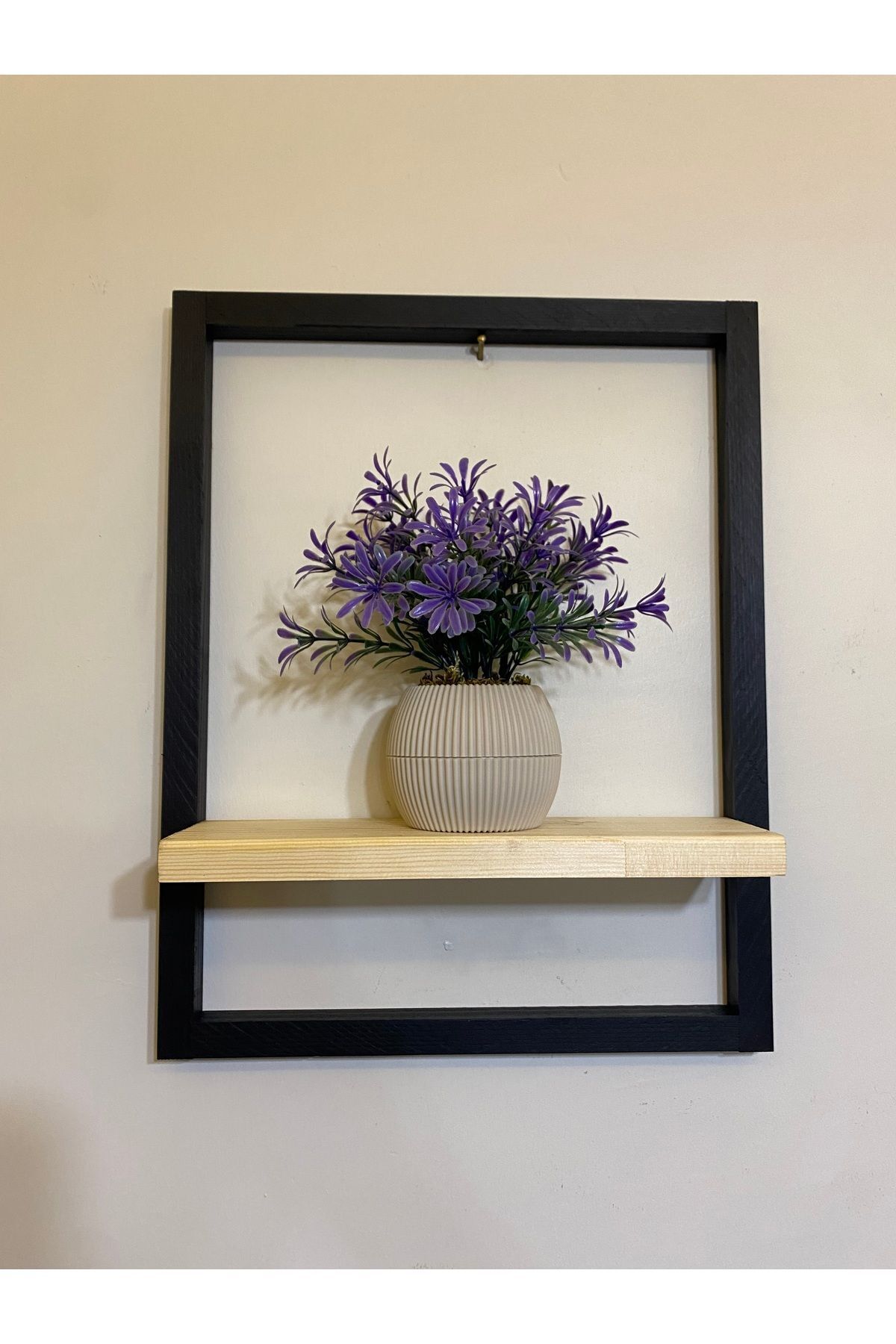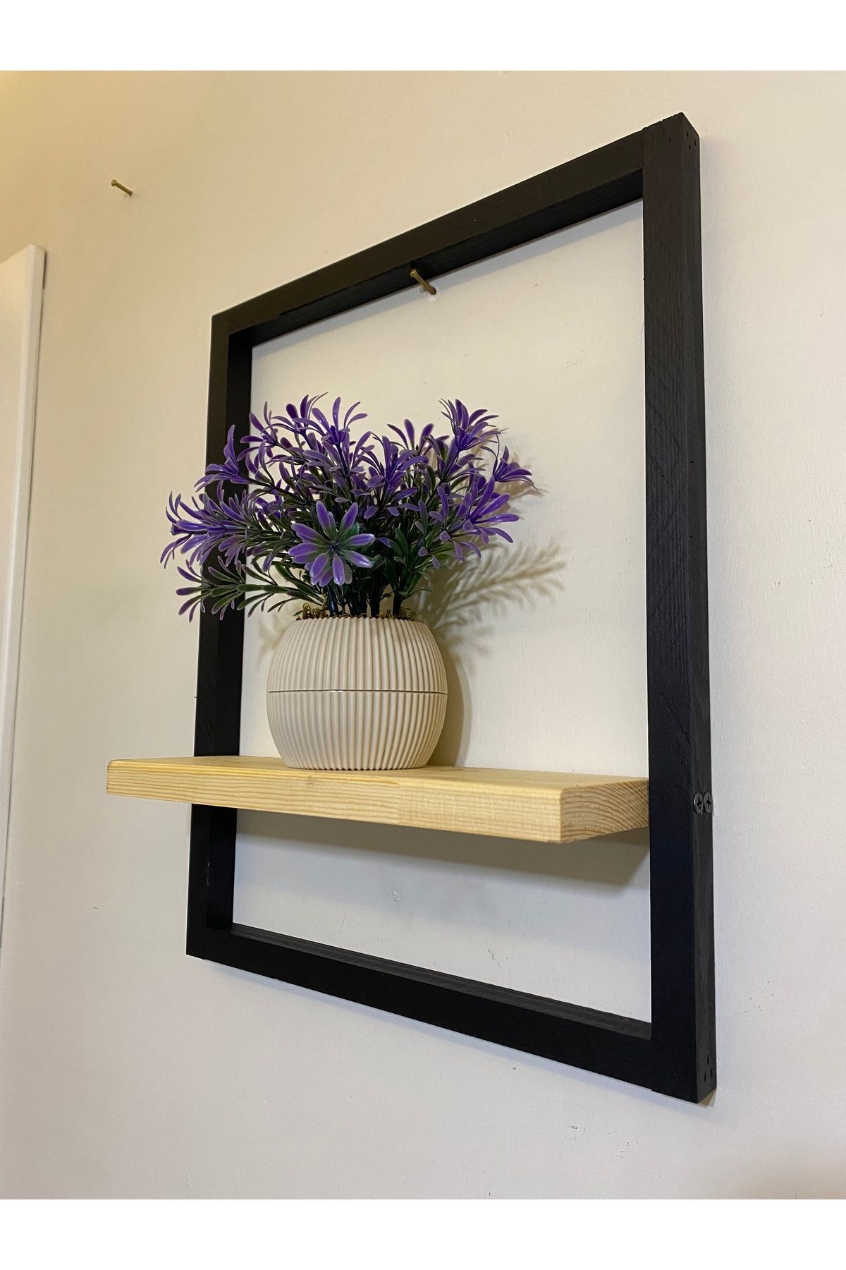 Tekli Lüx Dekoratif Siyah Ahşap Çerçeveli Raf Çiçeklik Duvar Süsü Ev Antre Hol Balkon Süsü