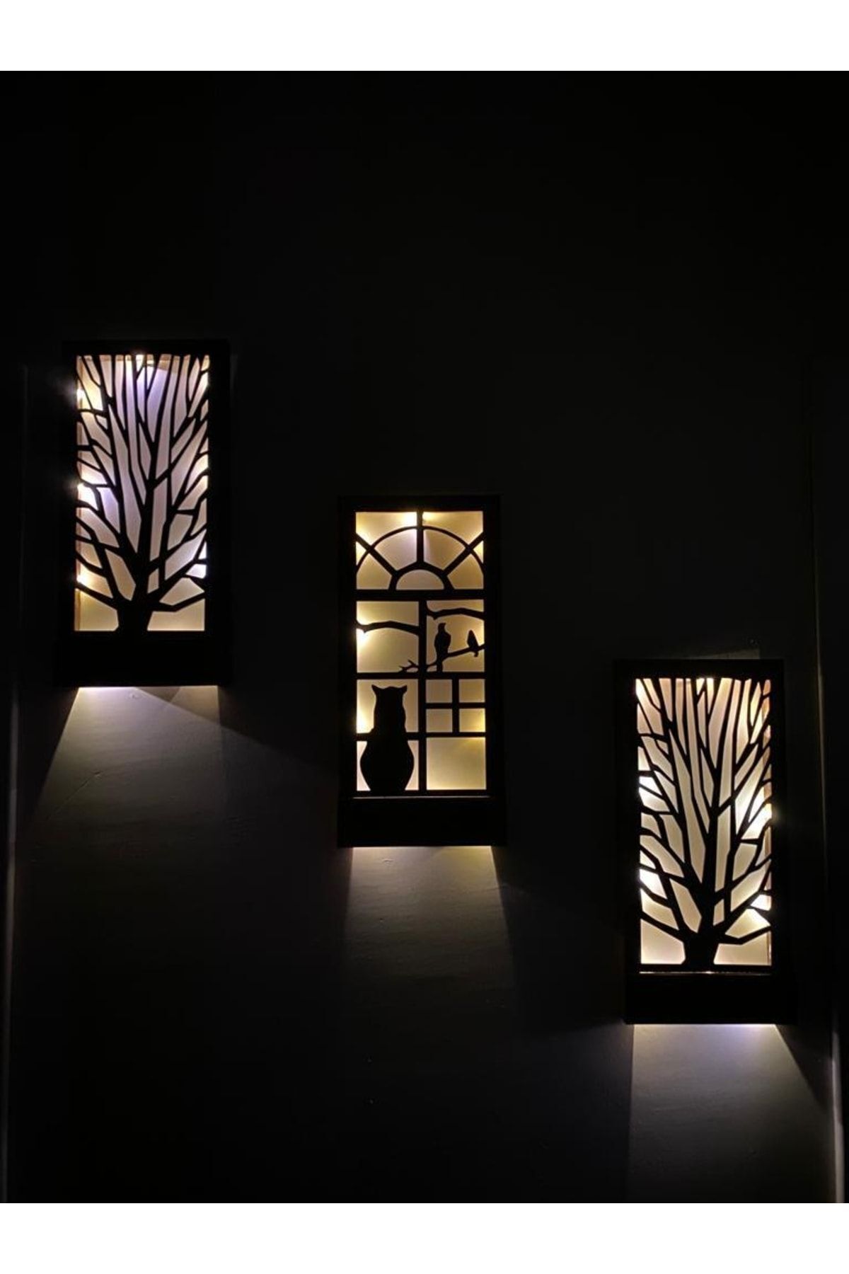 Üçlü Set Peri Ledli Masif Panel Dekoratif Tablo Duvar Süsü Ev Antre Balkon Süsü 36x18cm Piller Hariç